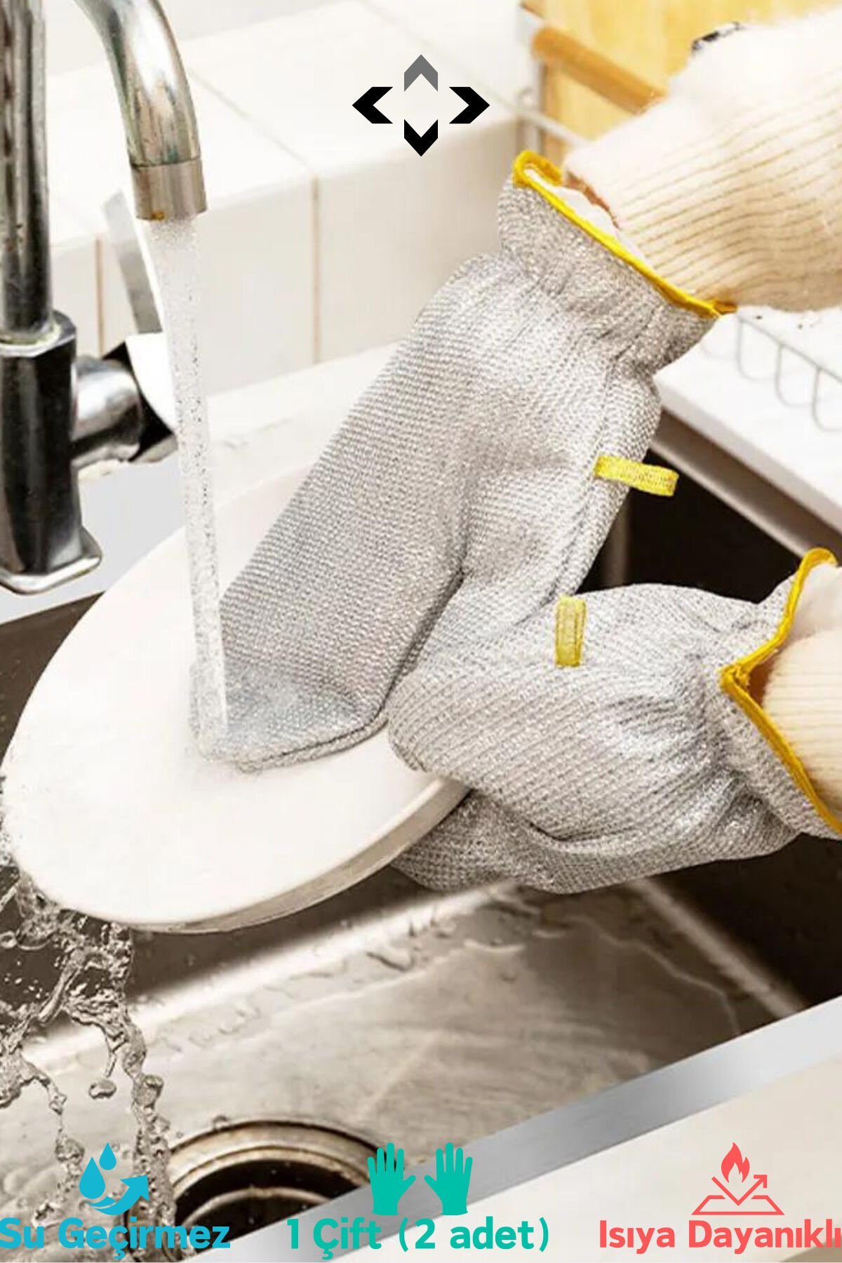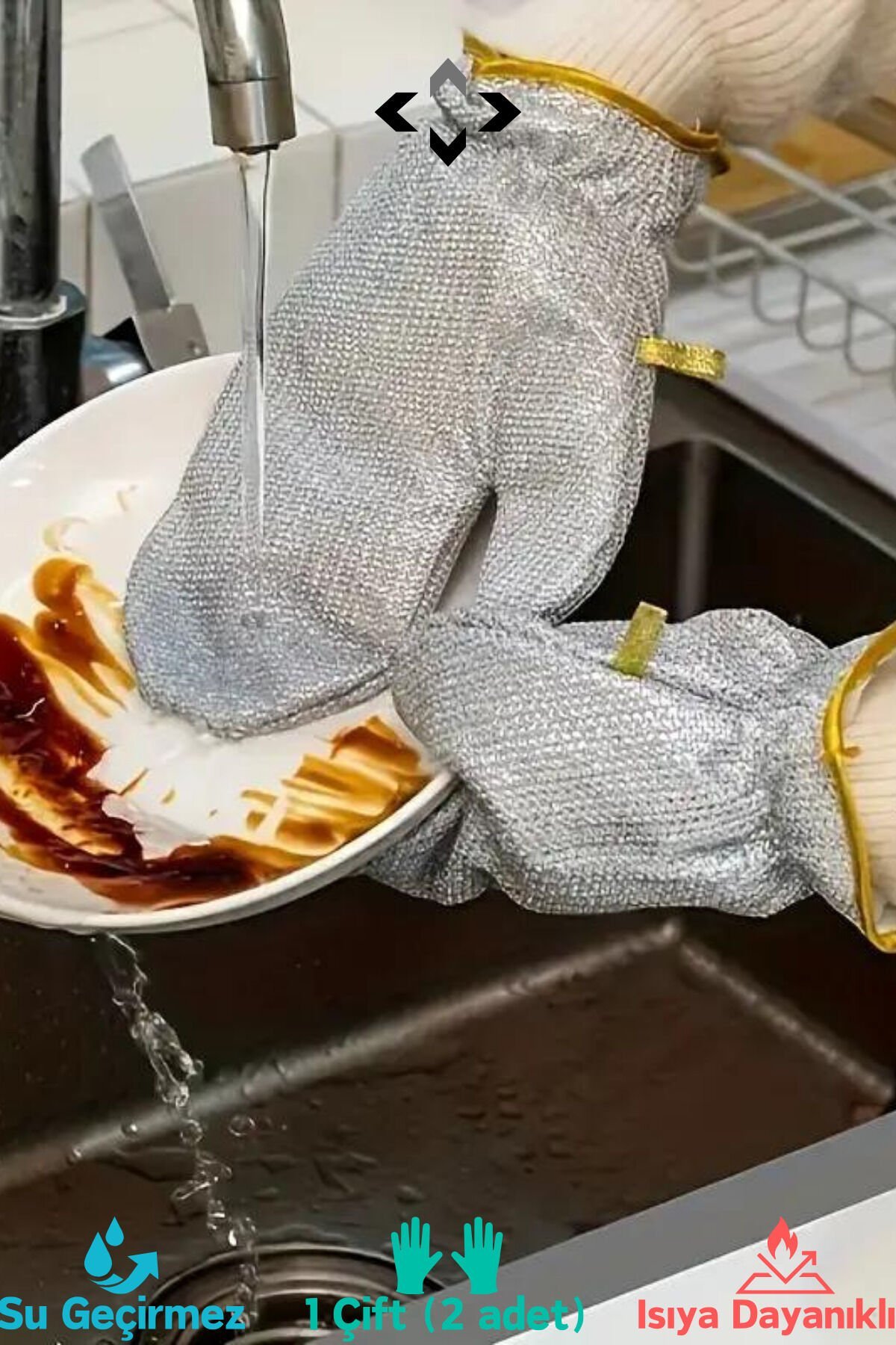1 Çift Teldiven Bez 2 Adet Çelik Su Geçirmez Tel Bulaşık Eldiveni Çok Amaçlı Eldiven Su Geçirmez