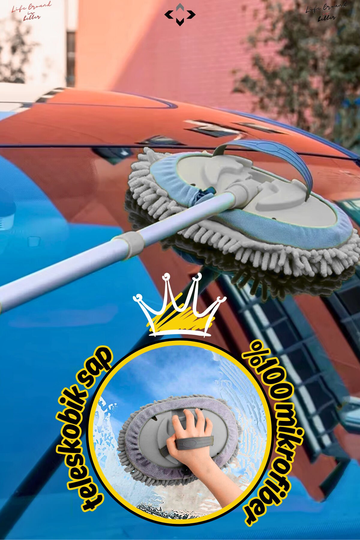 %100 Mikrofiber Oto Yıkama Mop Set Teleskobik Saplı Oto Yıkama Bezi Mopu Oto Aksesuarları