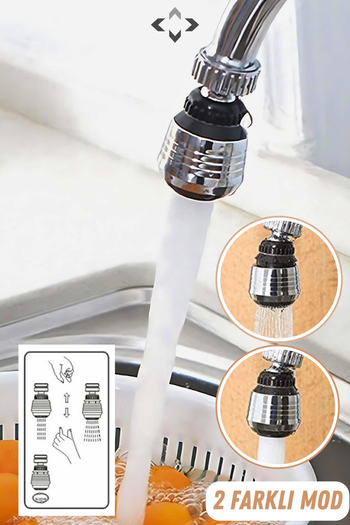 2 Fonksiyonlu Musluk Batarya Başlığı Musluk Ucu Aparatı 2 Farklı Mod 360 Derece Dönerli Başlık