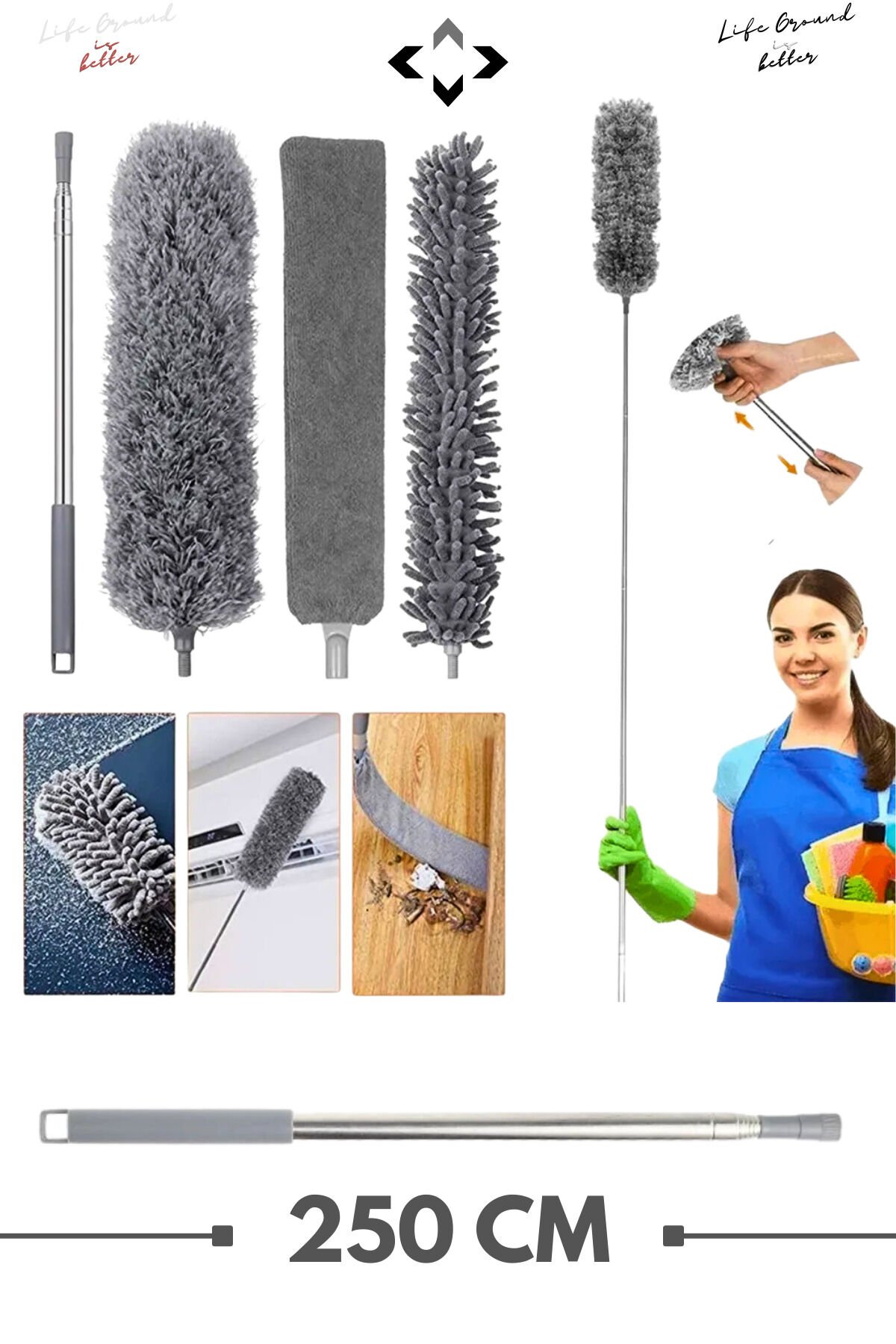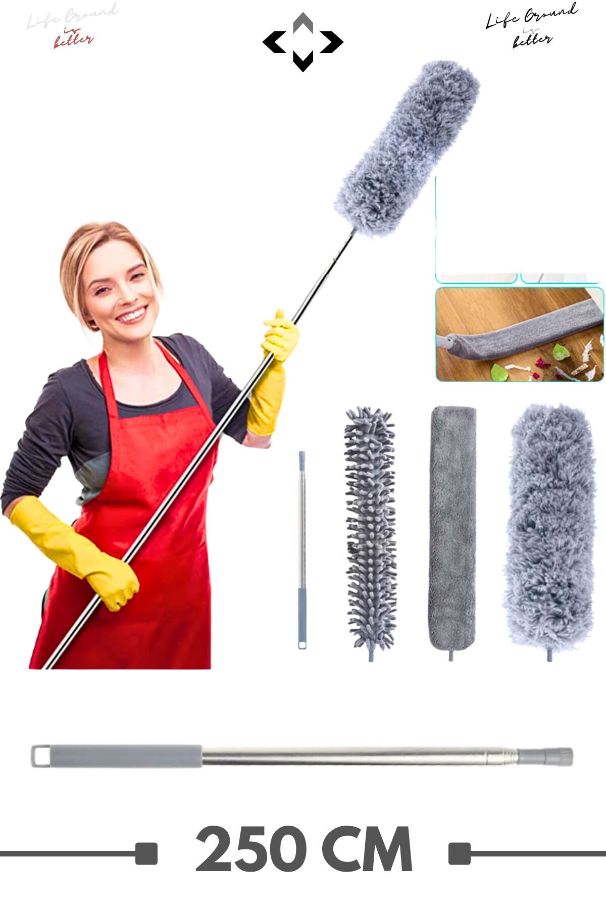 250 cm Uzayan Teleskopik Mikrofiber Toz Alma Aparatı – Yıkanabilir Başlıklı Temizlik Seti