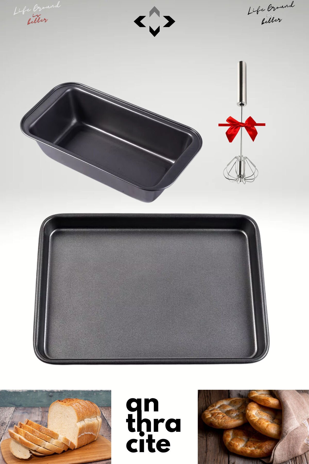 2in1 Antrasit Pide/Ekmek Yapma Tepsisi Fırın Ekmek Pide Kalıbı Paslanmaz Karbon Çelik Set