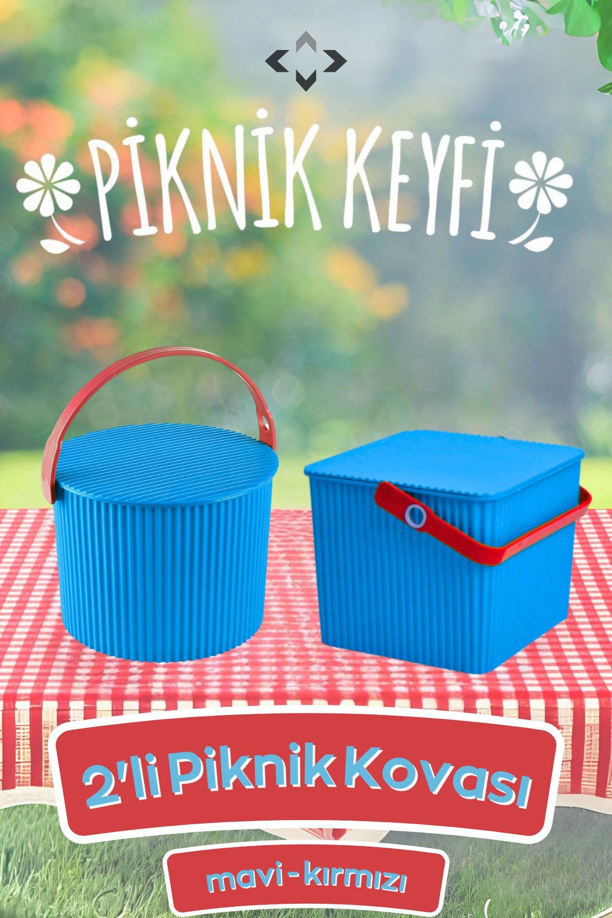 2'li Piknik Kovası 2 adet Piknik Sepeti Piknik Kovası Piknik Seti Piknik Çantası Kare Yuvarlak