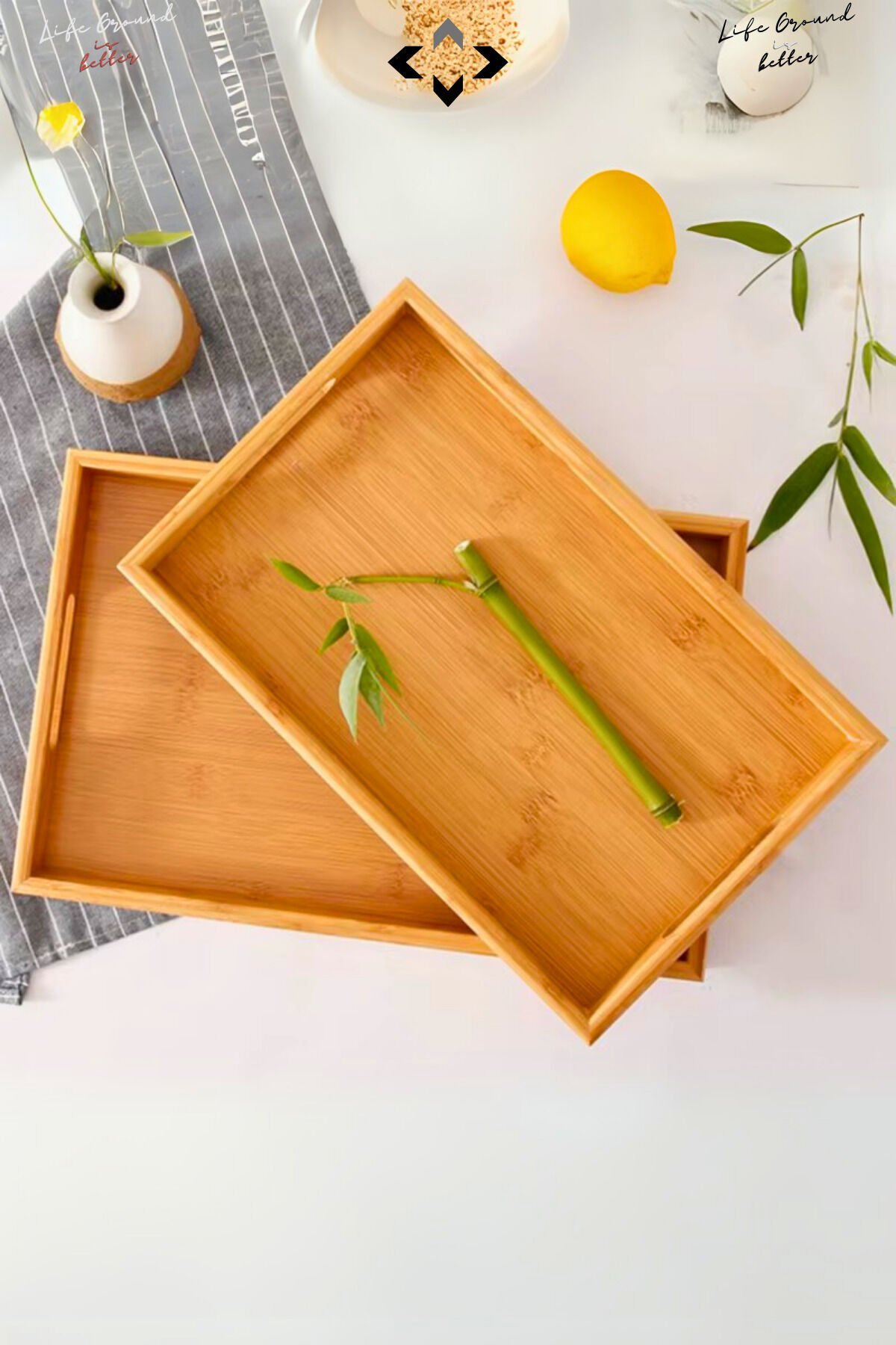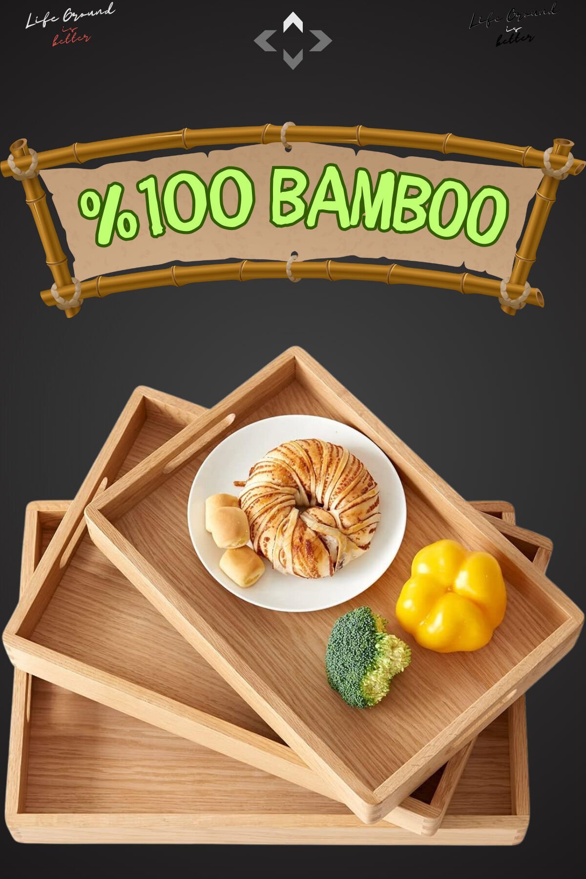 - %100 bambudan üretilmiş olup, doğal ve sürdürülebilir bir malzeme seçeneği sunar.; - Üç farklı boyutta tasarlanmış dikdörtgen tepsi, çeşitli sunum ihtiyaçlarınıza uygun esneklik sağlar.; - ürün, yerel kaynaklı malzemeler kullanılarak üretilmiştir; böylece hem çevre dostu hem de kültürel açıdan zengin bir tercih yapmış olursunuz.; - Her bir parça ayrı ayrı kullanılabilecek şekilde tasarlanmıştır; bu sayede mutfakta veya sofrada farklı amaçlarla rahatlıkla kullanılabilir.