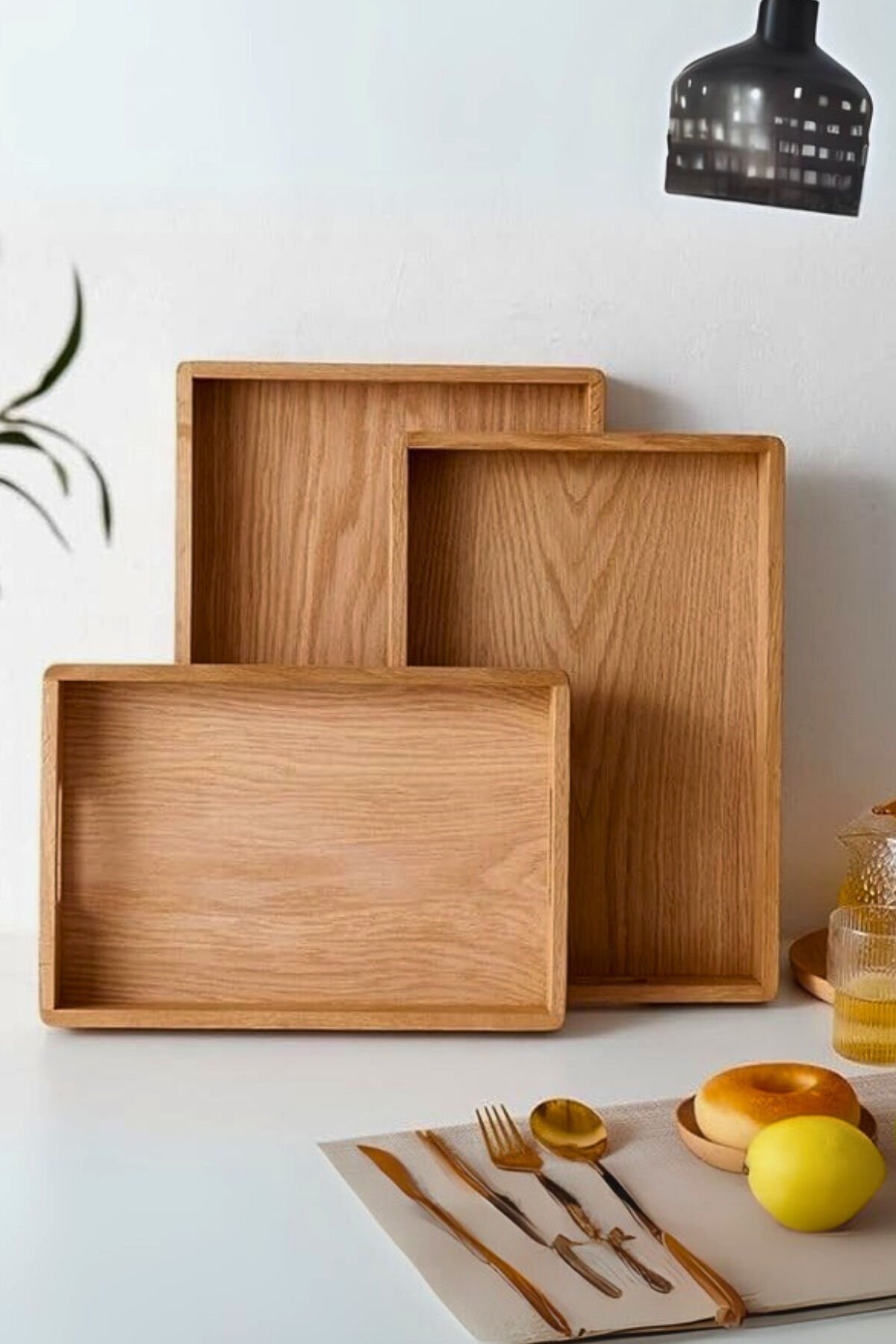 3’lü Bambu Sunum Tepsisi %100 Bambu Dekoratif Sunum Tepsisi Dikdörtgen Tepsi