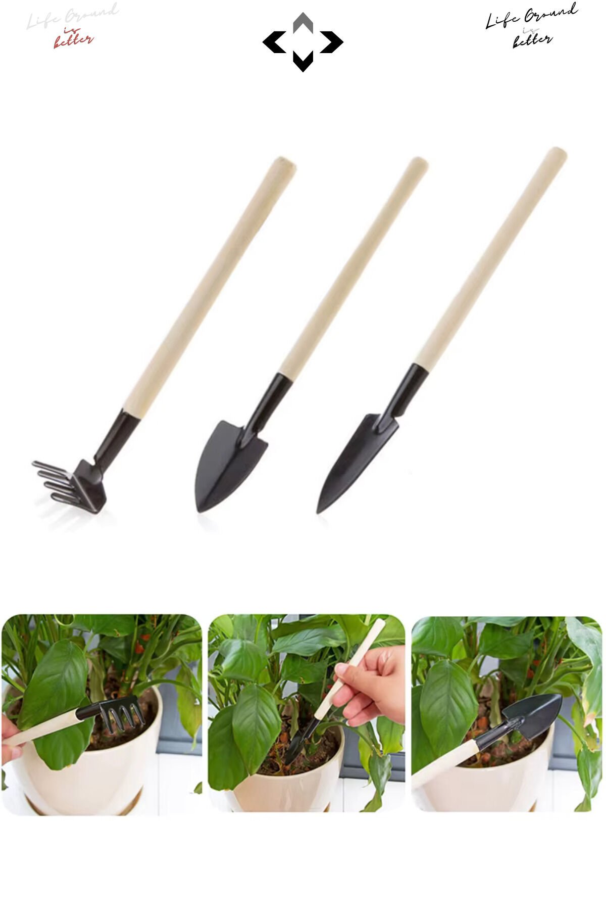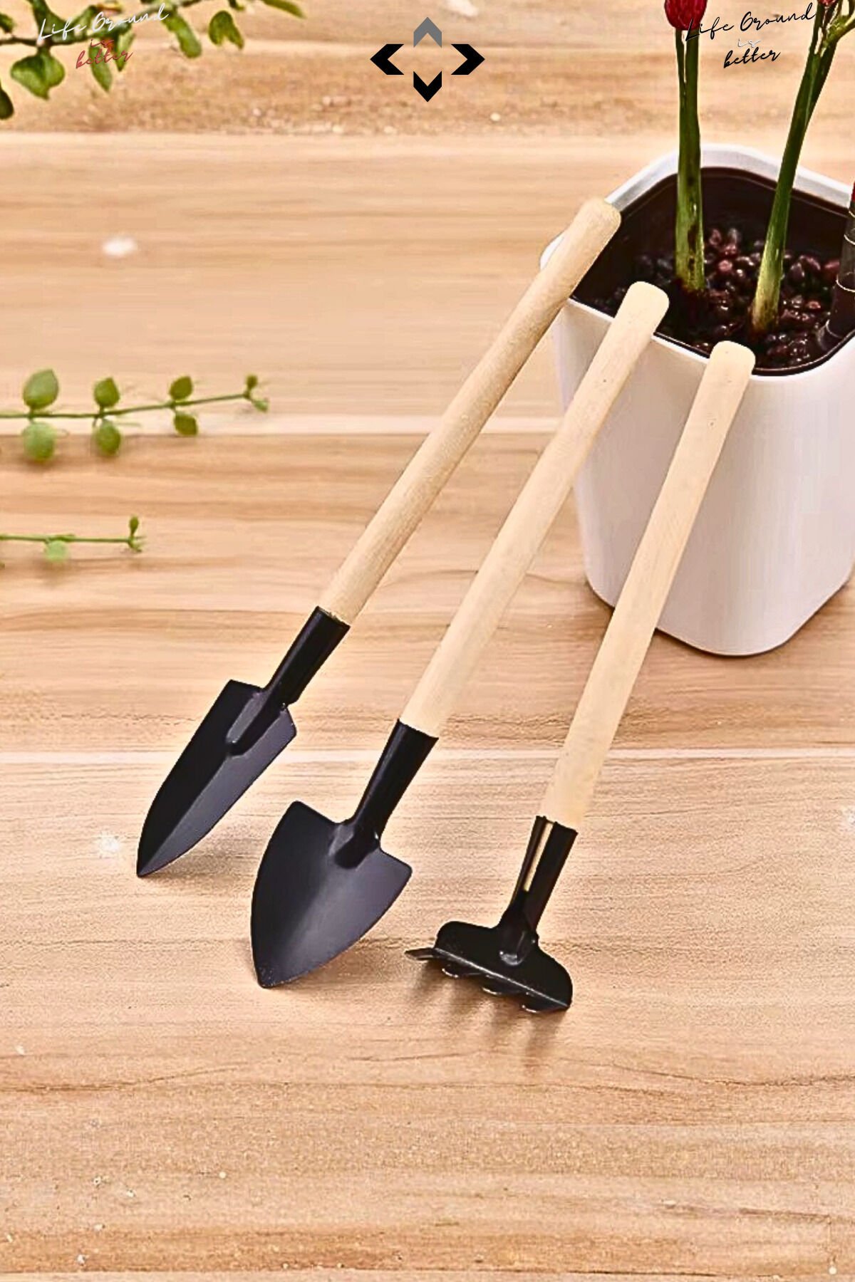Balkon, teras, saksı ve küçük bahçelerinizde pratik kullanım için tasarlanmış mini bahçe seti ile çiçeklerinizi ve bitkilerinizi kolayca dikebilir, toprağınızı havalandırabilir ve bakımını yapabilirsiniz.