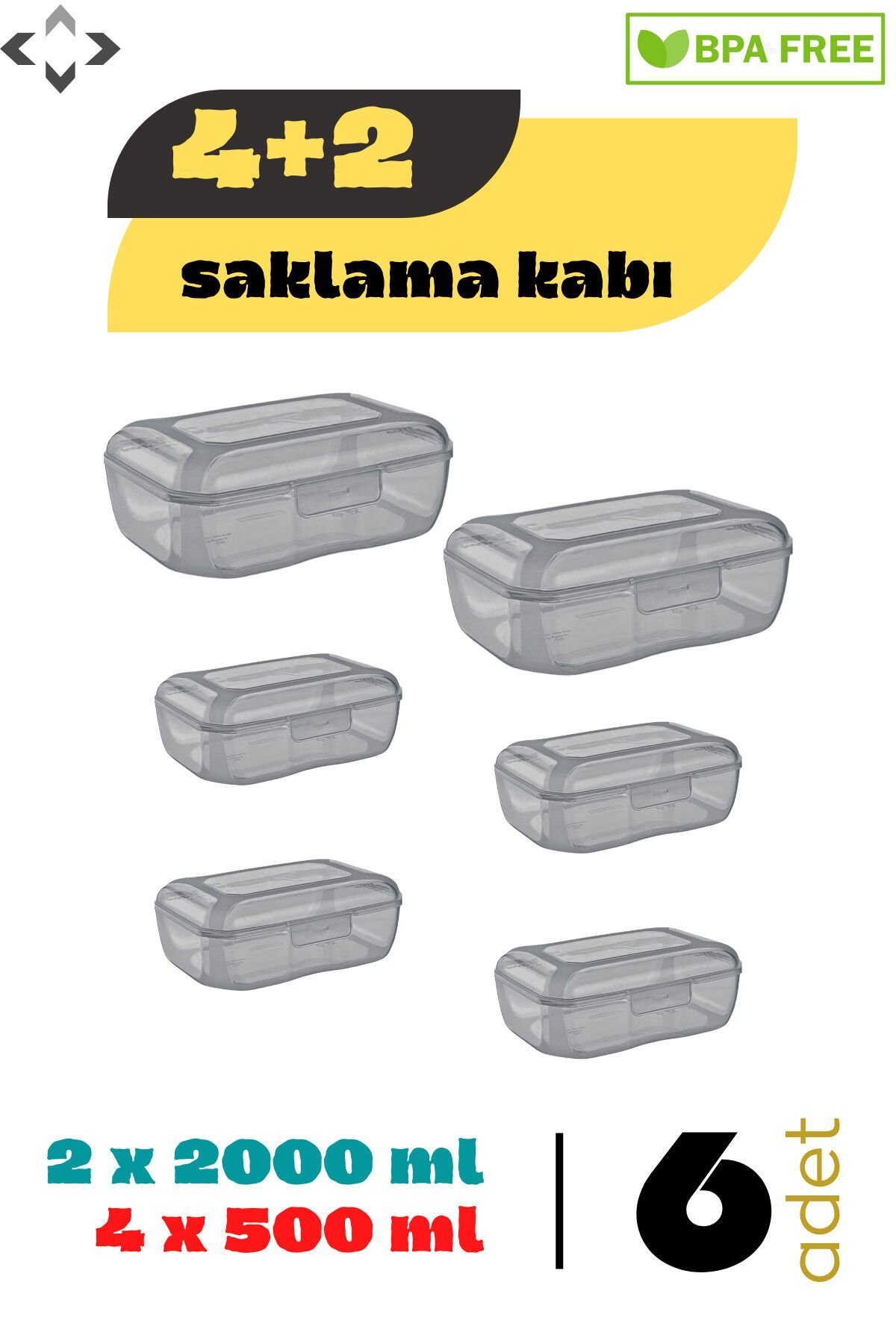; Saklama Yemek Beslenme Kabı ; ; 4+2 Şeffaf Saklama Kabı ; ; Bpa içermez ; ; 2 x 2000 ml & 4 x 500 ml (2000+2000+500+500+500+500ml) 6 adet saklama kabından oluşmaktadır. ; ; Kilitli kapağı sayesinde yiyeceklerinizi güvenle saklayabilirsiniz. ; ; Koku yapmaz, yiyeceklerle temas edebilir. ; ; Kaliteli sert plastikten üretilmiştir. ; ; Beslenme kabı, yemek kabı ve saklama kabı olarak bir çok farklı yerde kullanılabilir. ; ; İç içe geçme özelliği sayesinde yer kaplamaz, rahatlıkla saklanabilir. ; ;
