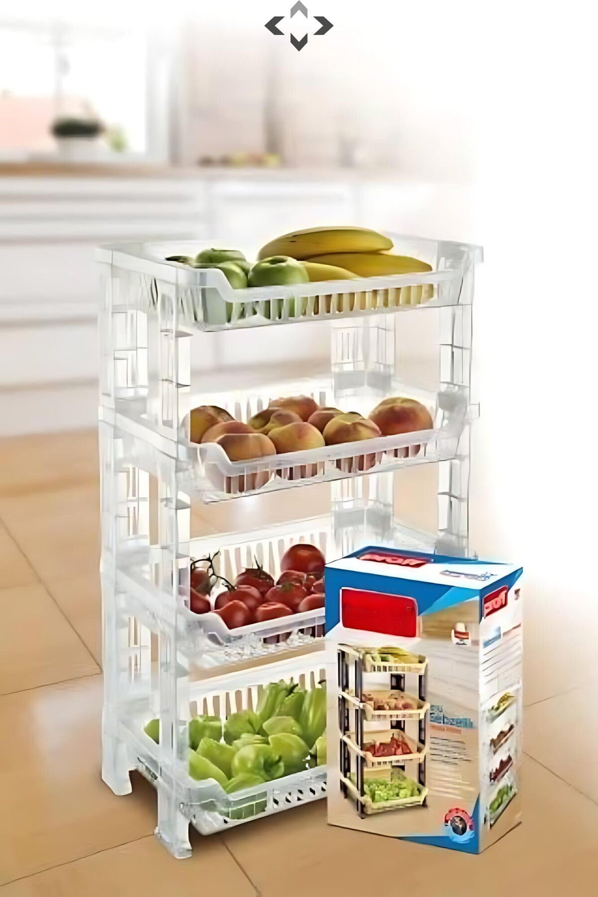 4 Katlı Şeffaf Sebzelik Geniş İç Hacimli Sebze-Meyve Rafı 4 Katlı Mutfak Organizeri