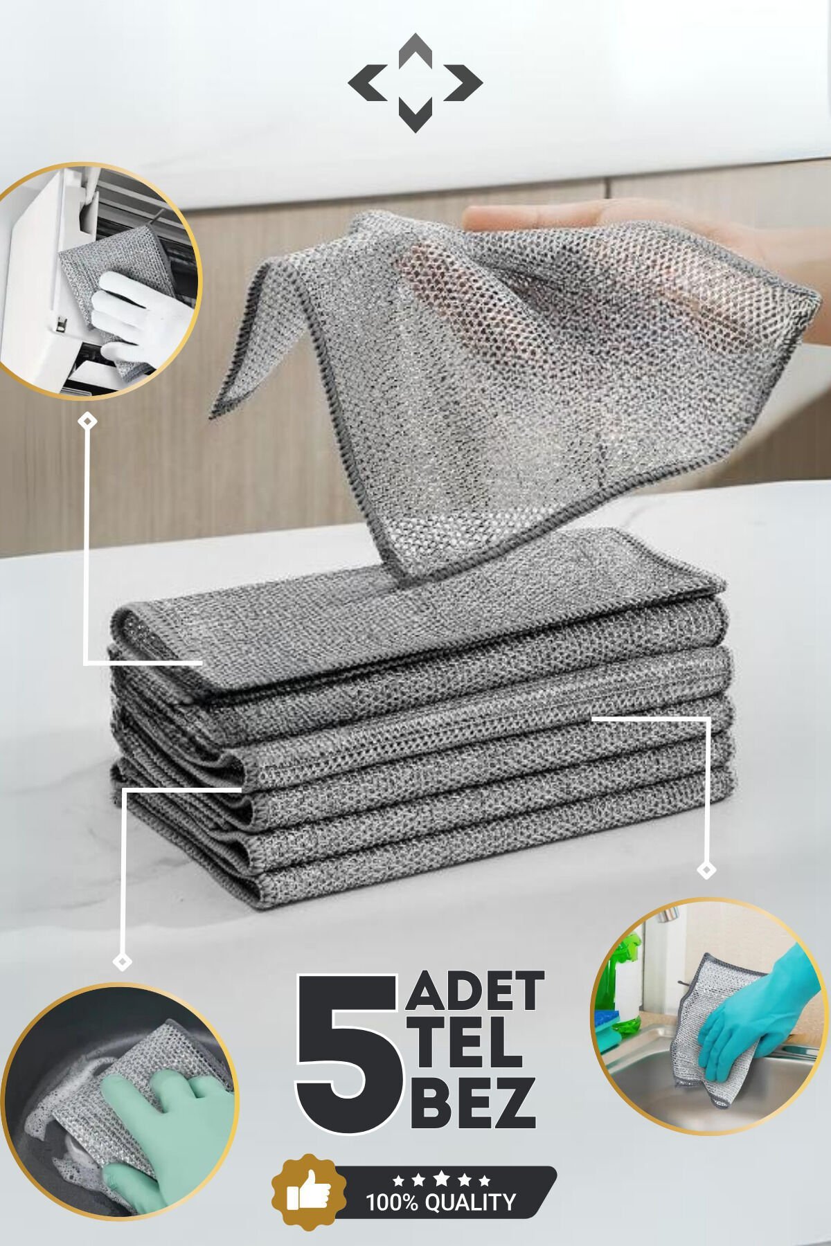 5 adet tel bulaşık bezi çizmez bulaşık teli çelik bez 20x20 çift katmanlı tel bez ; Paket içeriği : 5 adet tel bulaşık bezi ; güçlü temizleme etkisi: Gelişmiş elmas şeklindeki ızgara dokuma teknolojisi ve yüksek kaliteli metal tel malzemeler sayesinde pas, yağ lekeleri vb. Tencereye veya ellere zarar vermeden kolayca çıkarılabilir. Mutfağınızda iyi bir yardımcıdır. ; ıslak ve kuru kullanım: Ince delik tasarımı onu çok köpüklü yapar. Islatabilir ve bulaşıkları, tencereleri vb. Verimli bir şekilde temizlemek için kullanabilir veya doğrudan ızgara, fırın vb. Temizlemek için kullanabilirsiniz. ; küçük boyut, büyük kullanım?: Kullanımdan sonra duvara asılabilir, böylece mutfakta yer tasarrufu sağlar ve su kolayca tahliye edilebilir. Kabın içine derinlemesine nüfuz edebilir ve kolayca temizlenebilir, küçük bir şişenin ağzı bile kolayca temizlenebilir. ; kolay temizlenir: Bulaşık fırçası dayanıklıdır ve günlük yıkamaya dayanır. Ancak temiz kalmak için sadece su altında durulamak yeterlidir. Bezlerdeki büyük delik deseni gıdaların yıkanmasını sağlar. ; yaygın: Çok amaçlı tel bulaşık bezleri dayanıklı ve tekrar kullanılabilir ve mutfak eşyalarını, arabaları, paslanmaz çelik veya tabakları, fincanları, tencereleri, meyveleri, sebzeleri, tezgahları, küvetleri, lavaboları, masaları ve daha fazlasını silmek için kullanılabilir. Verimli performansı sayesinde mutfağınızın gereksinimlerini karşılar. ;