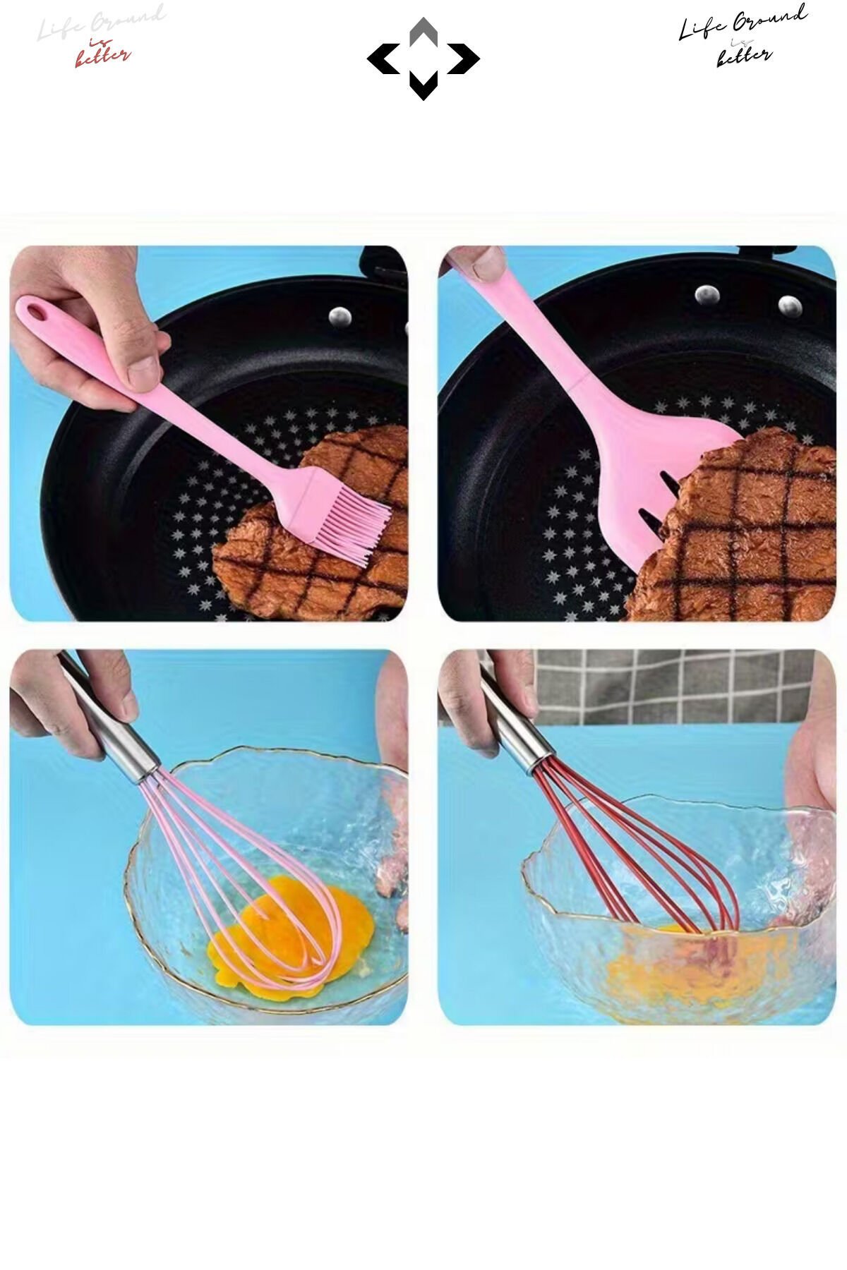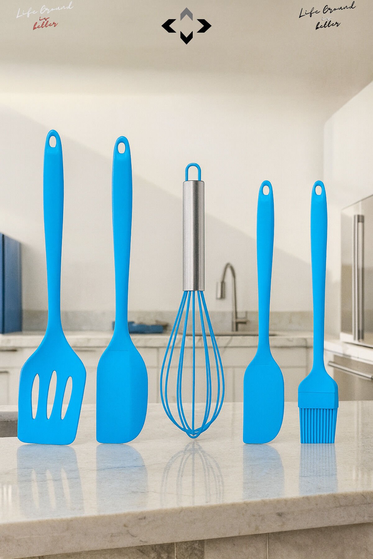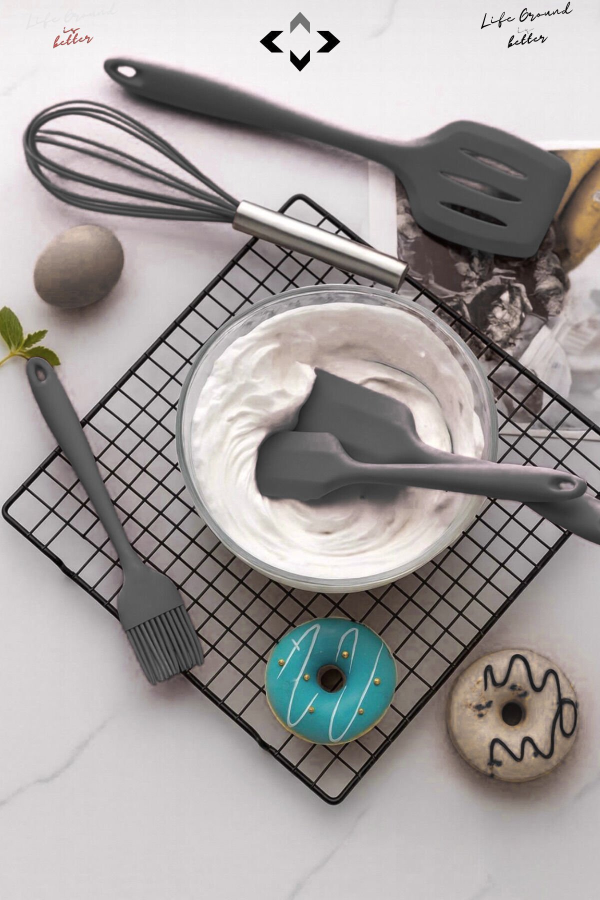 5’li Isıya Dayanıklı %100 Silikon Spatula Mutfak Gereç Seti Fırça Tel Çırpıcı Mutfak Gereçleri