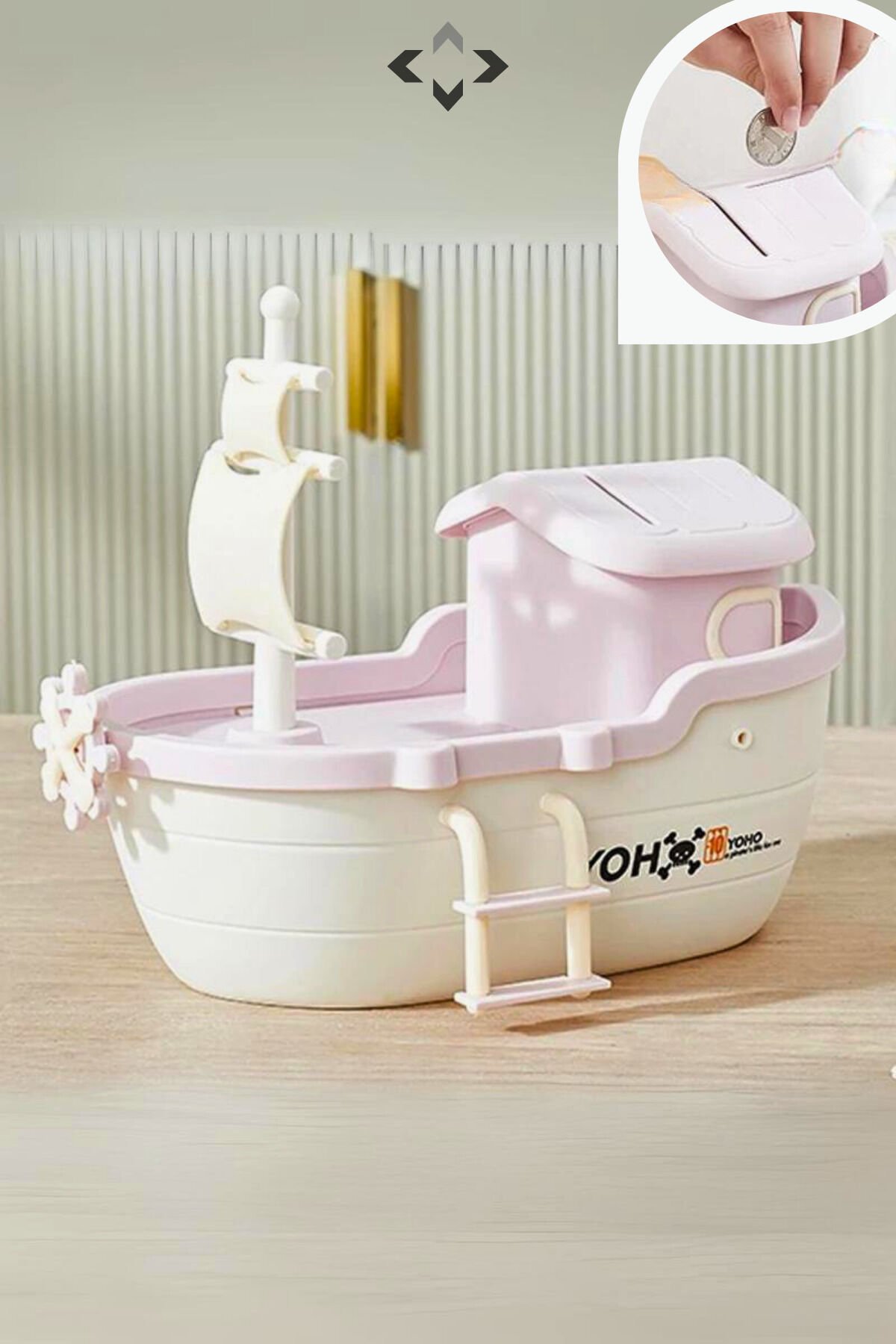 Büyük Boy Korsan Gemi Desenli Yelkenli Dekoratif Kumbara Biblo Soft Kumbara Eğlenceli Para Birikimi