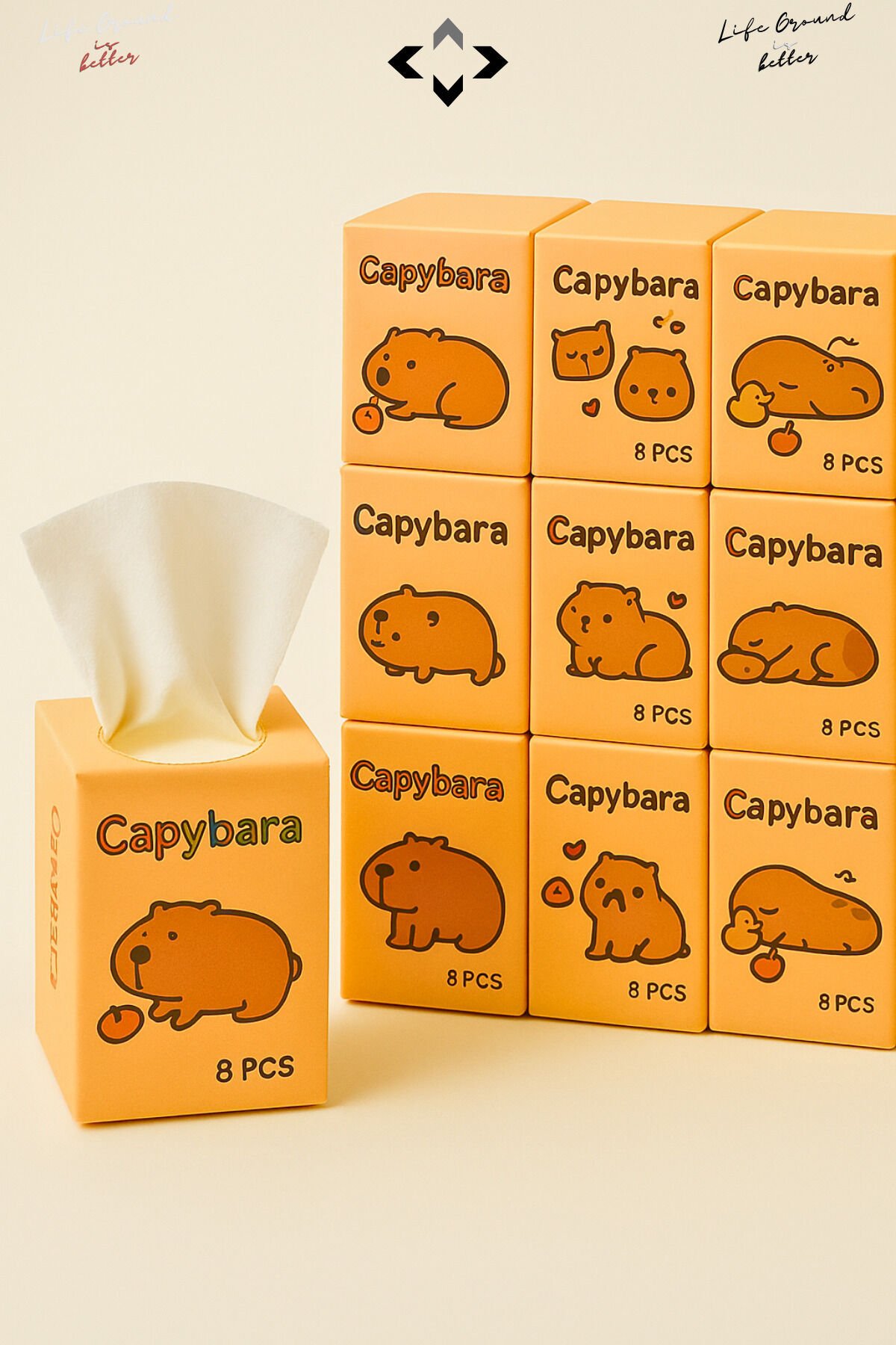 Capybara Sevimli Desenli 9’lu Mini Peçete Taşınabilir Çocuk Okul Çanta Cep Mendili Hijyenik Kağıt