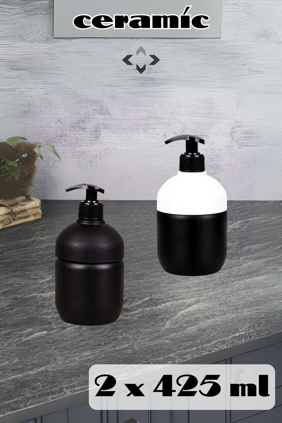 ceramic 2 ADET Seramik 425 ml Sıvı Sabunluk 2'li Banyo Sabunluk Seti Banyo Seti