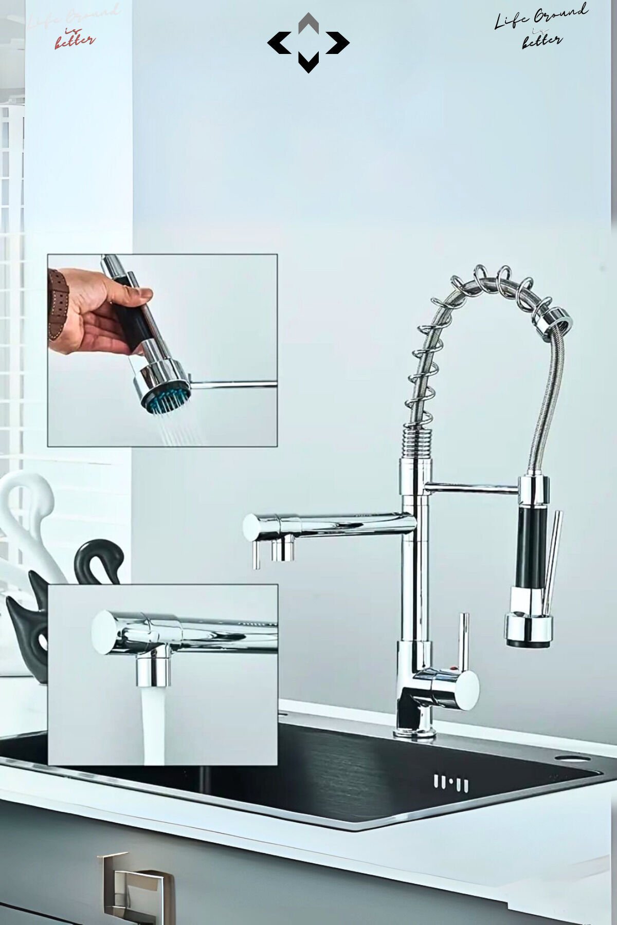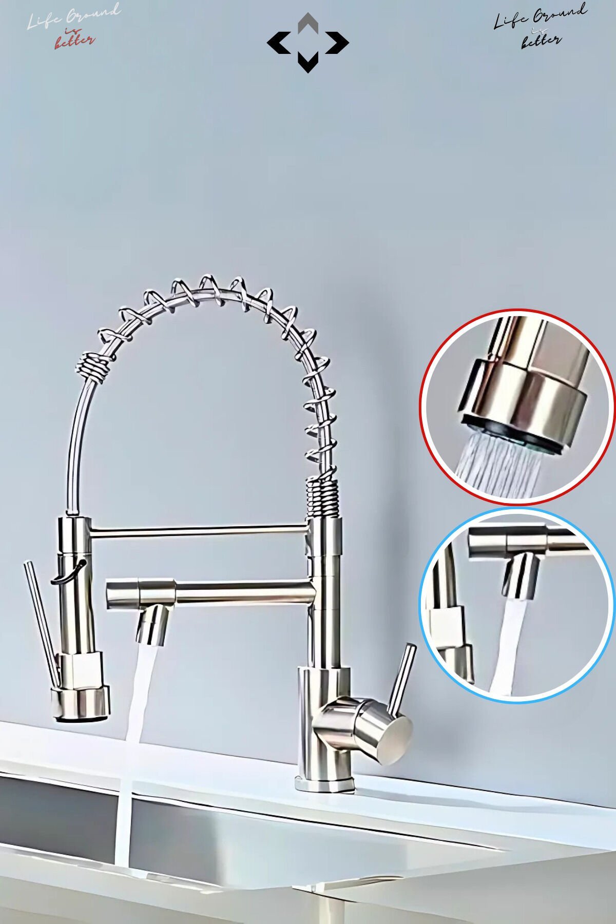 Çift Çıkışlı İNOX Endüstriyel Batarya Çok Fonksiyonlu Ayarlanabilir Eviye Mutfak Bataryası