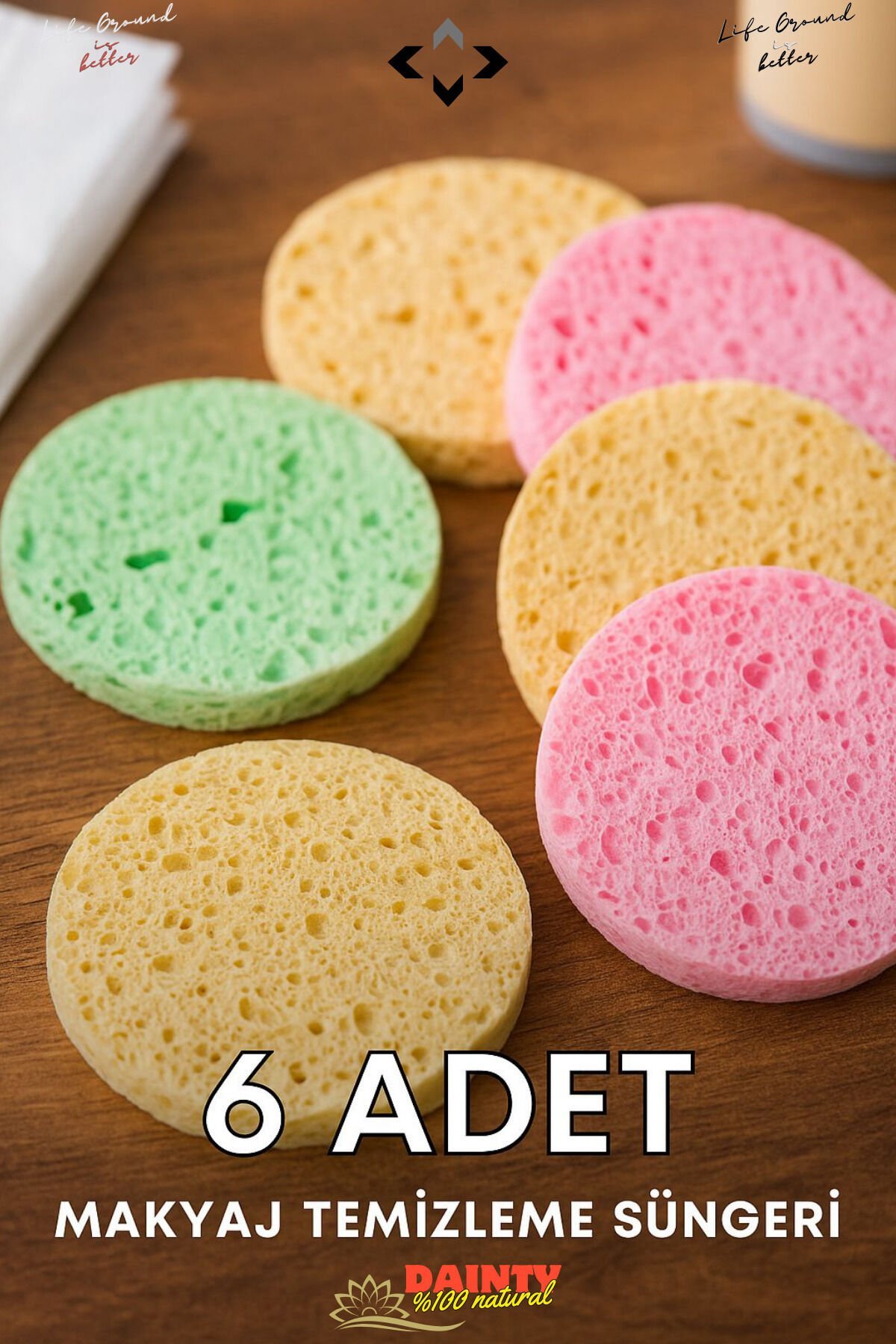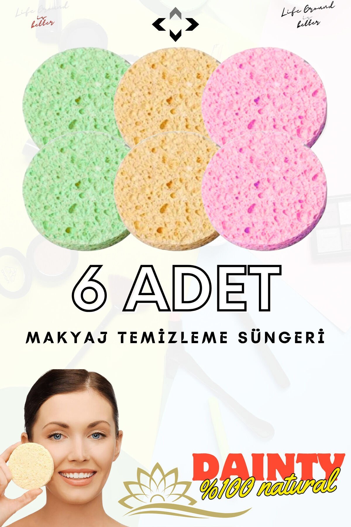 DAİNTY 6 Adet Yüz Temizleme Süngeri Makyaj Temizleme Süngeri %100 NATURAL