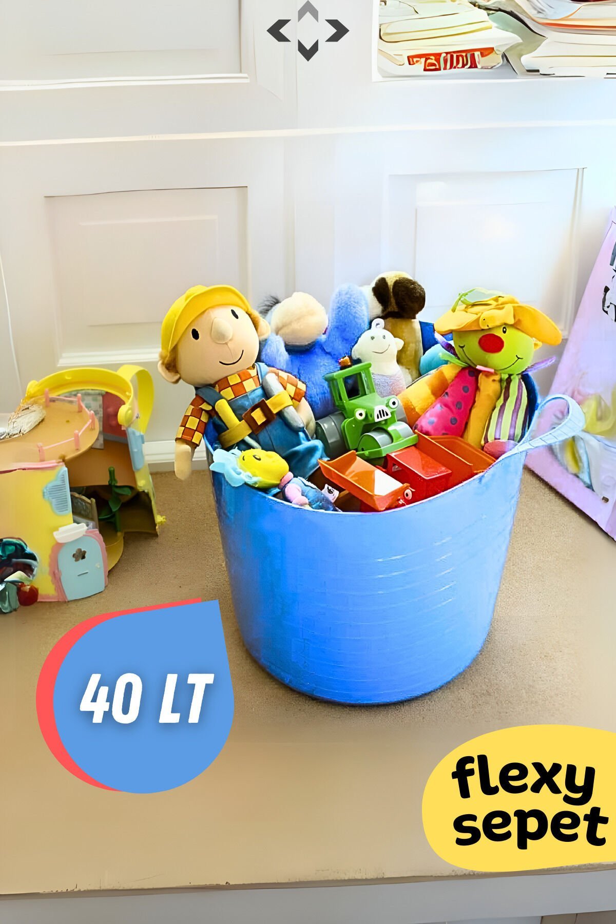 Flexy Esnek Oyuncak Sepeti - Çamaşır Sepeti - Düzenleyici 40 Lt Kırmızı-mavi