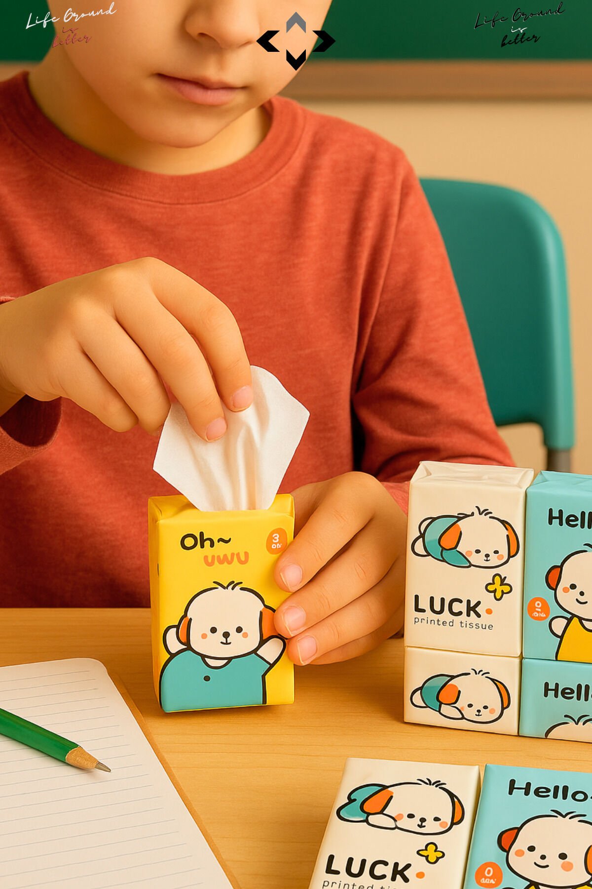 Hello Luck Sevimli Desenli 9’lu Mini Peçete Taşınabilir Çocuk Okul Çanta Cep Mendili Hijyenik Kağıt