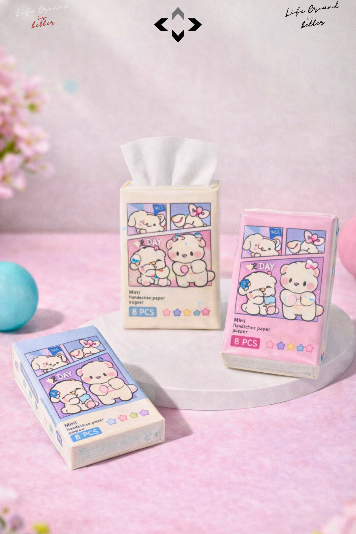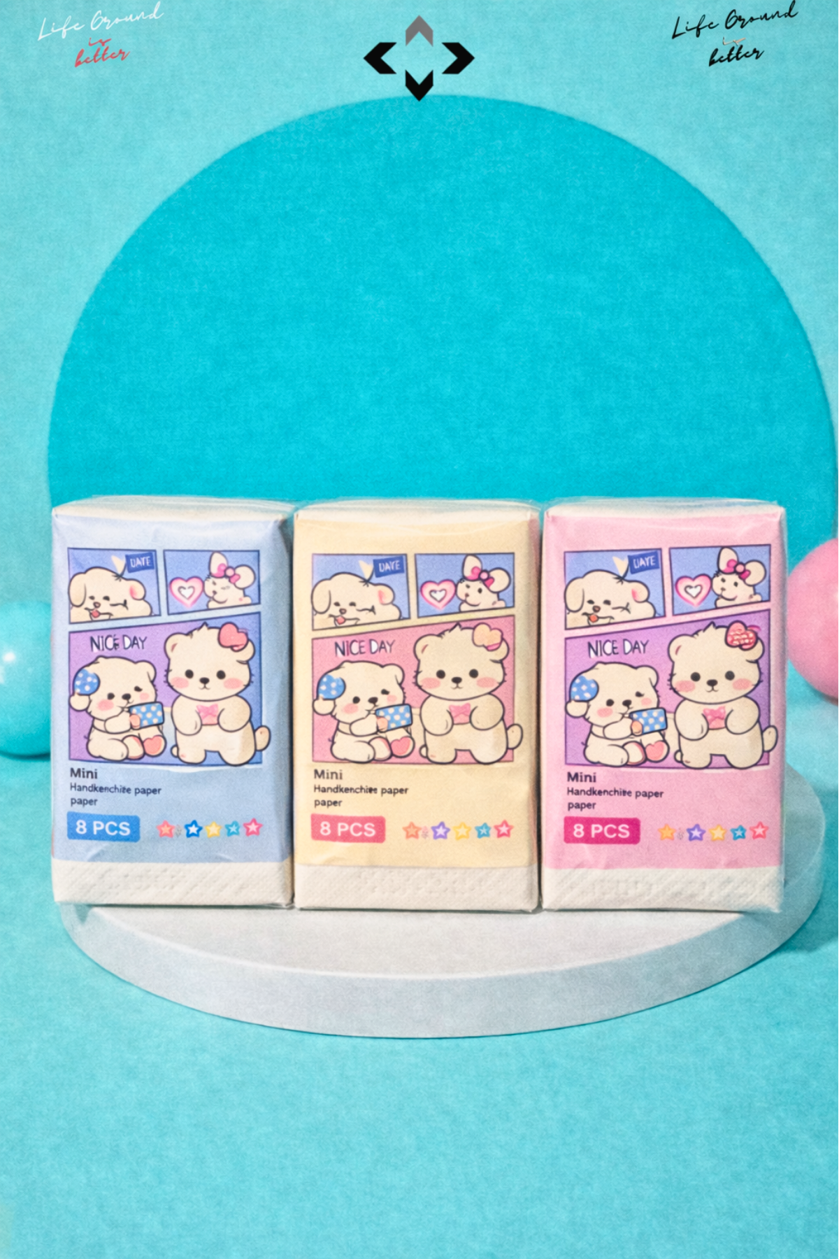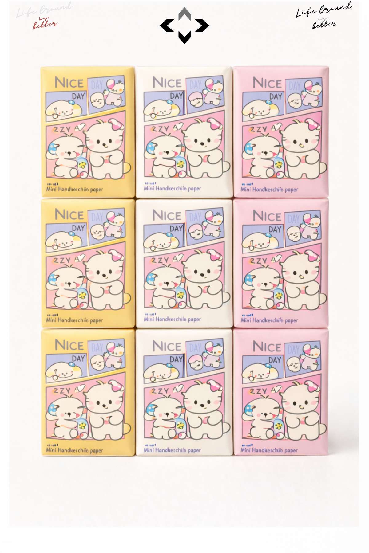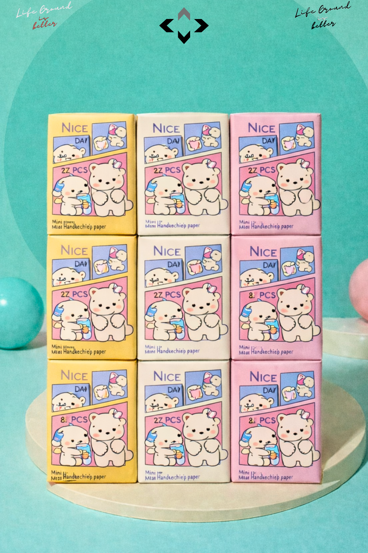 Nice Day Sevimli Desenli 9’lu Mini Peçete Taşınabilir Çocuk Okul Çanta Cep Mendili Hijyenik Kağıt