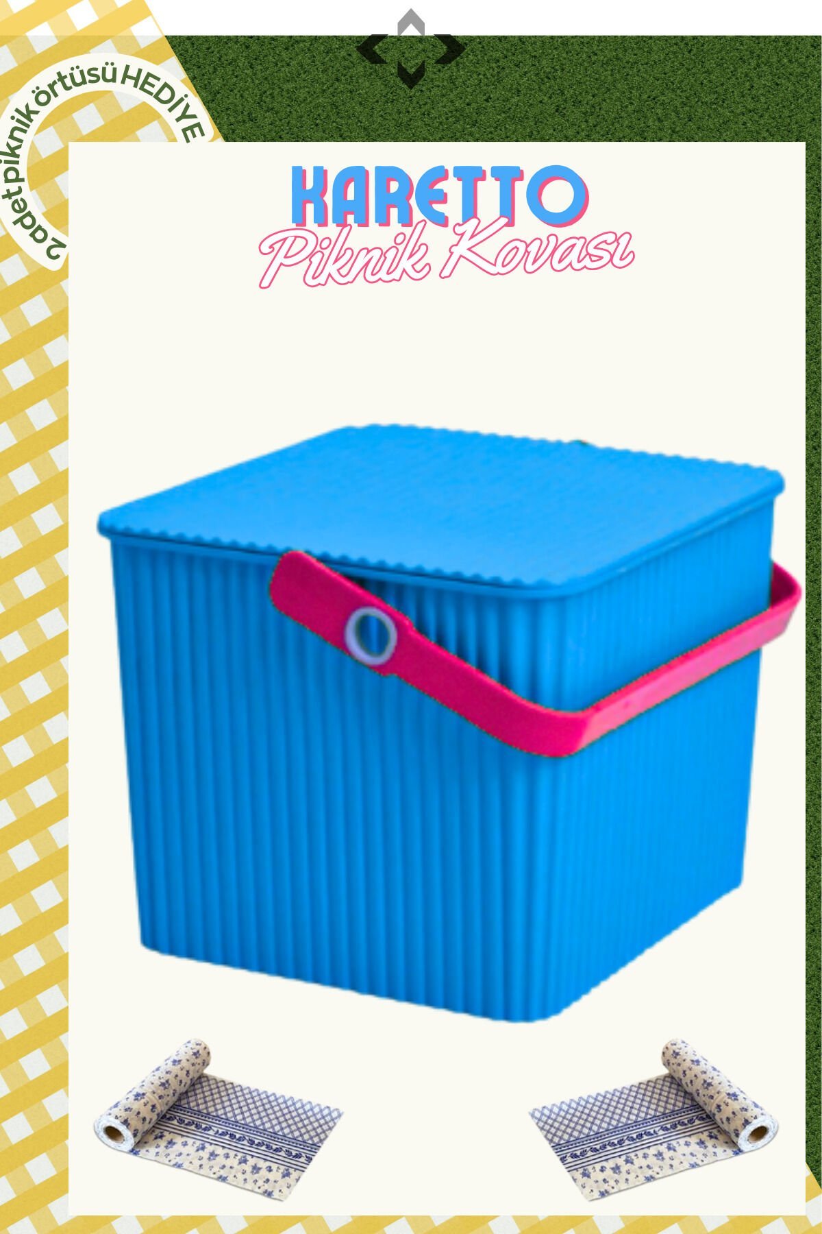 Karetto Rainbow Piknik Sepeti - 2 Adet Kullan - At Kağıt Piknik Örtüsü Hediye Piknik Çantası