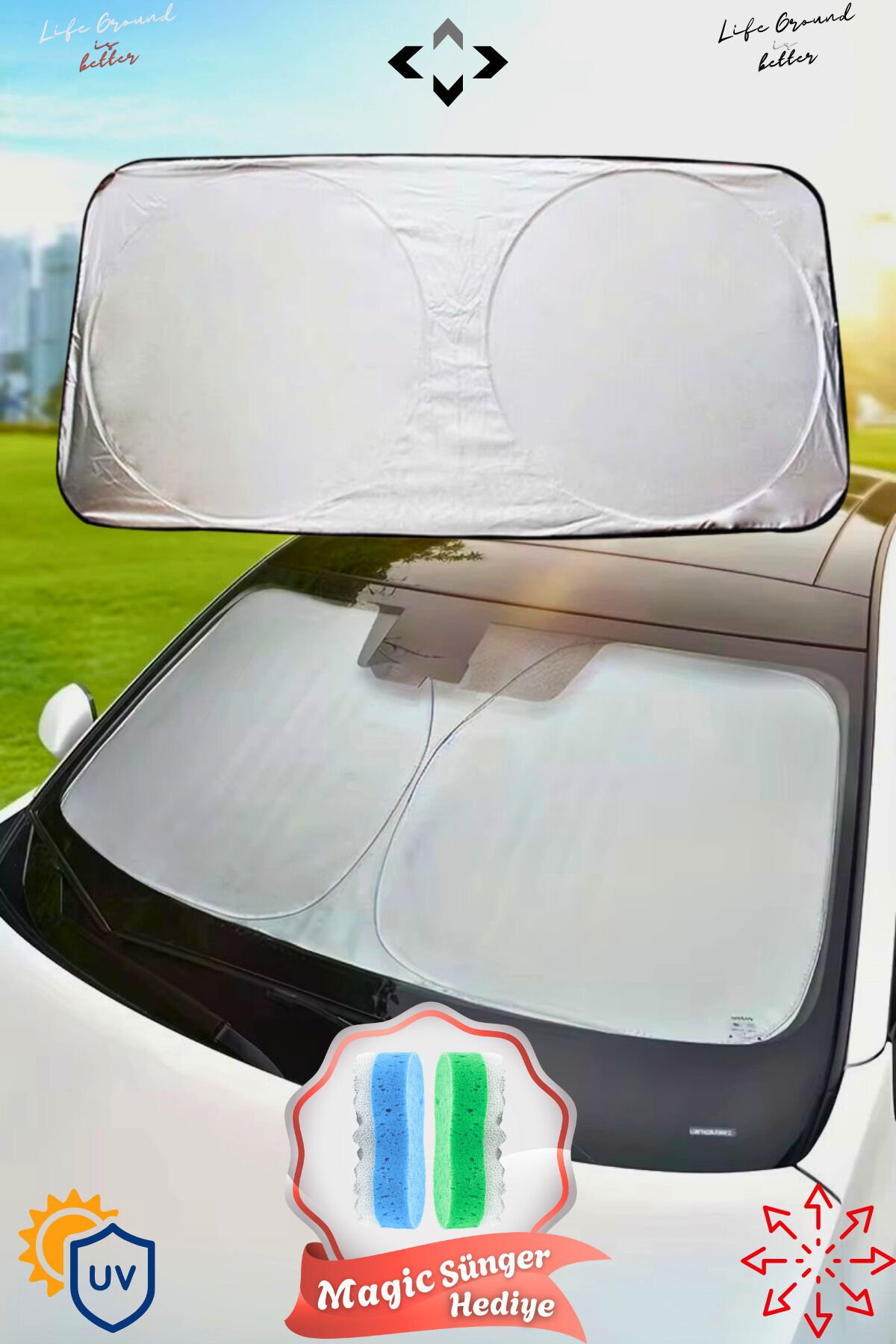 Katlanabilir Oto Ön Cam Güneşlik Ve Sihirli Sünger Oto Güneşlik Isı Geçirmez Iç Aksam Koruyucu