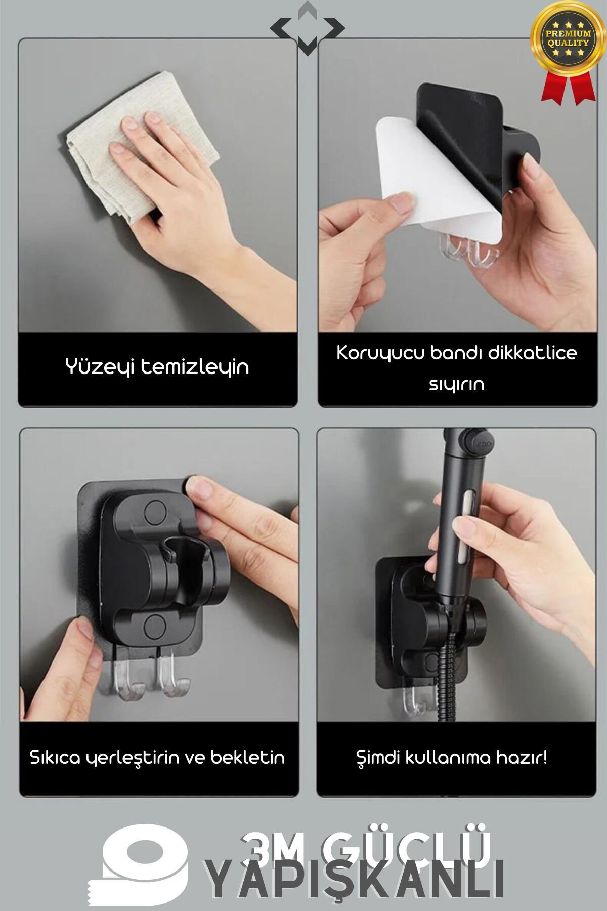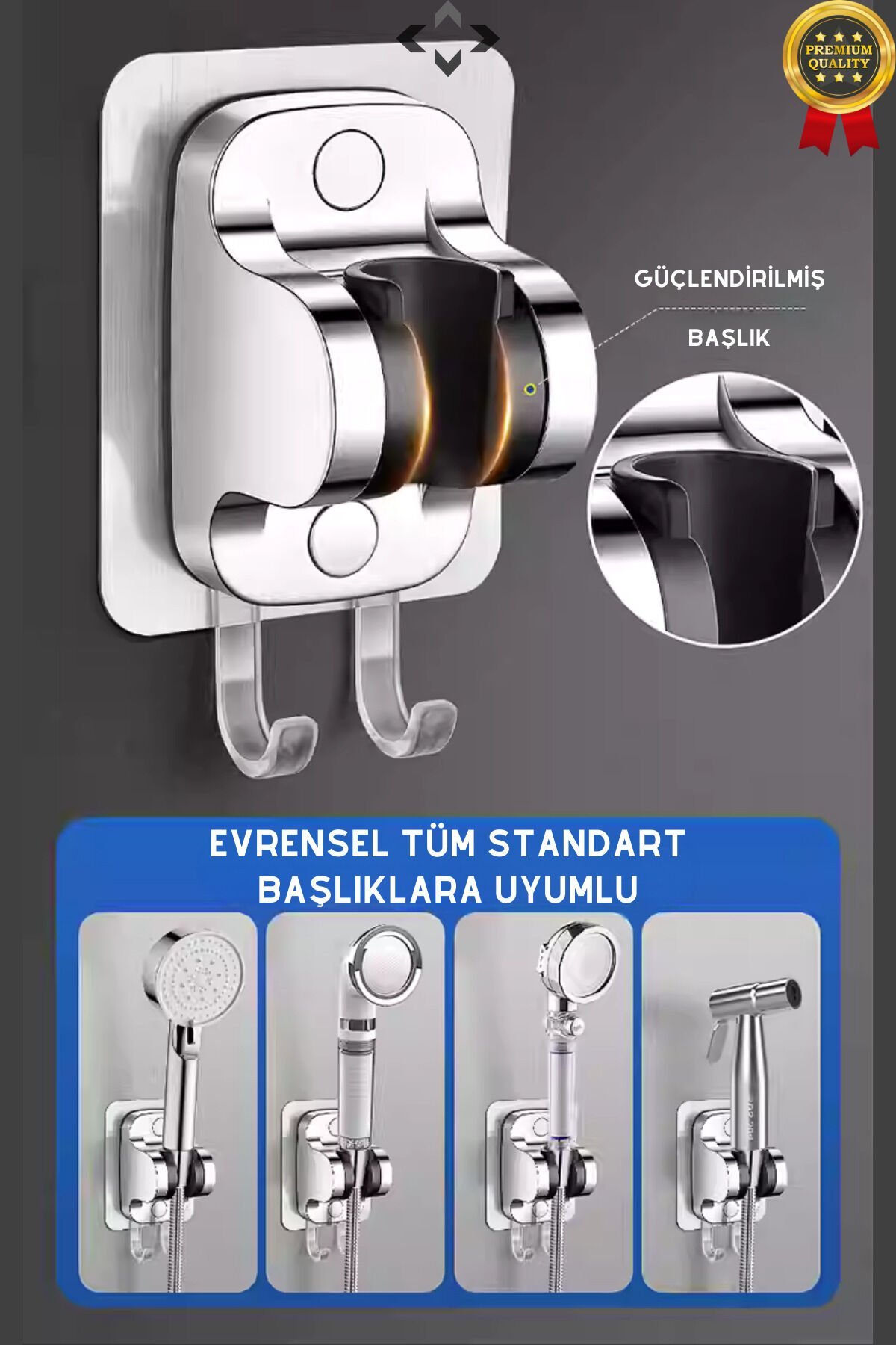 Plastik materyal kullanımı sayesinde hafif ve dayanıklı bir yapıya sahip, uzun ömürlü kullanım sunar; Kendinden yapışkanlı tasarımı ile kolay montaj imkanı sağlar; ekstra alet gerektirmez ve hızlı bir şekilde duş başlığına takılabilir; İki askılı yapısı sayesinde banyonuzda pratik bir şekilde kişisel eşyalarınızı asmanızı sağlar, düzeni korumanıza yardımcı olur; Mafsalı tasarımı ile duş başlığına kolayca takılabilir ve sabit kalmasını sağlar, hareket halindeyken bile güvenle kullanabilirsiniz;