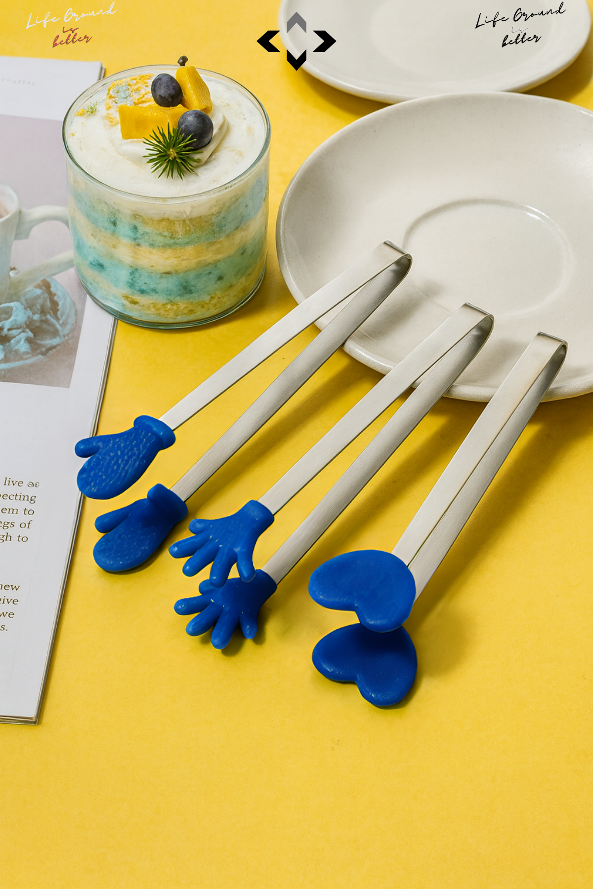 Lacivert Silikon Uçlu Mini Dekoratif Servis Maşası Seti Kaymaz Tutucu Figürlü Maşa Mutfak Sunum Lokum Maşası