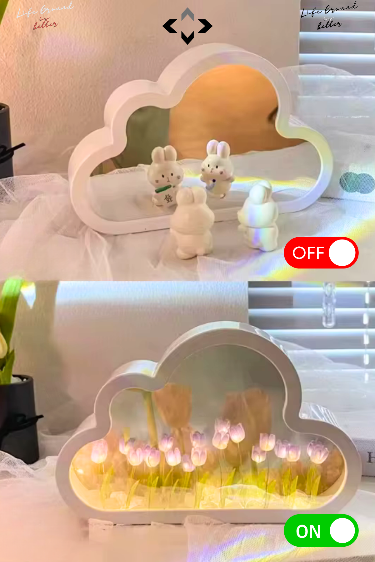 LİLACtulip 3 Modlu Bulut Tasarımlı LED Lamba Dekoratif Obje Laleli Aydınlatma Gece Lambası & Masa Süsü Biblo
