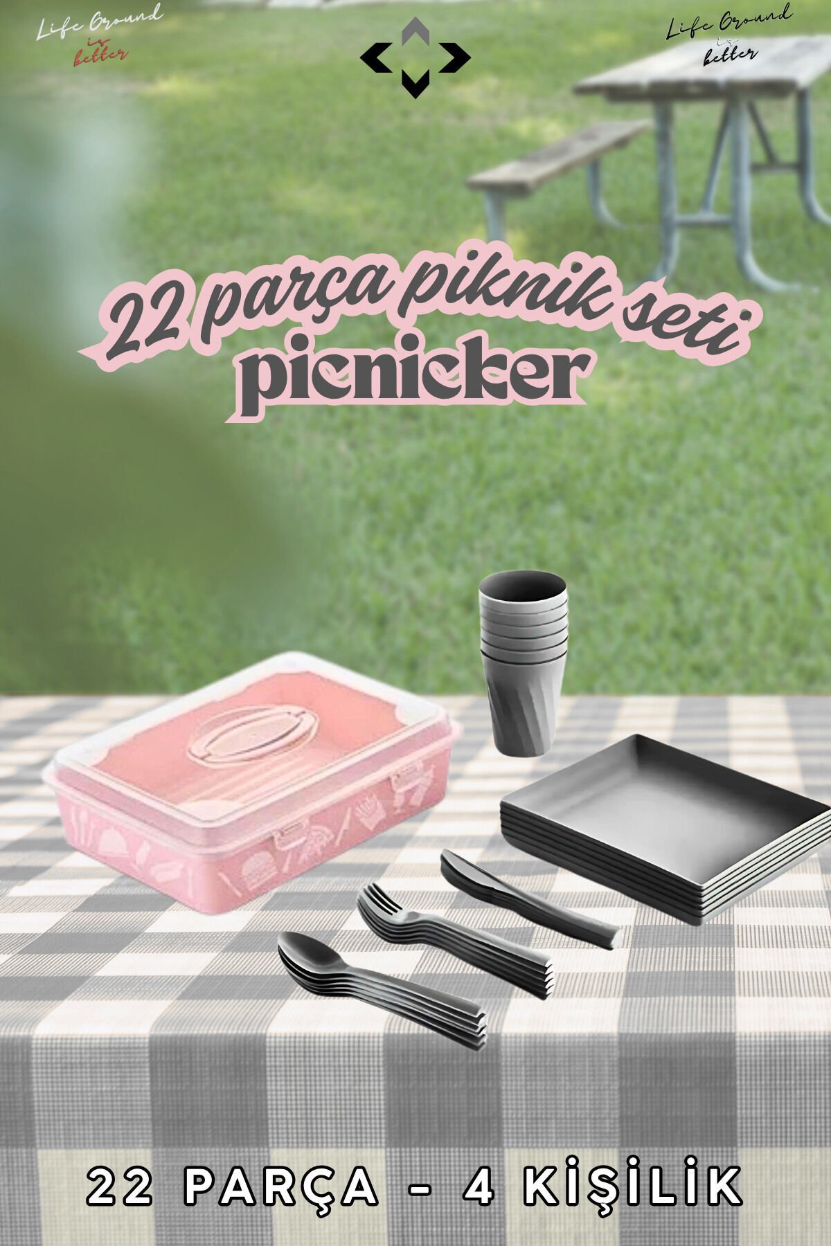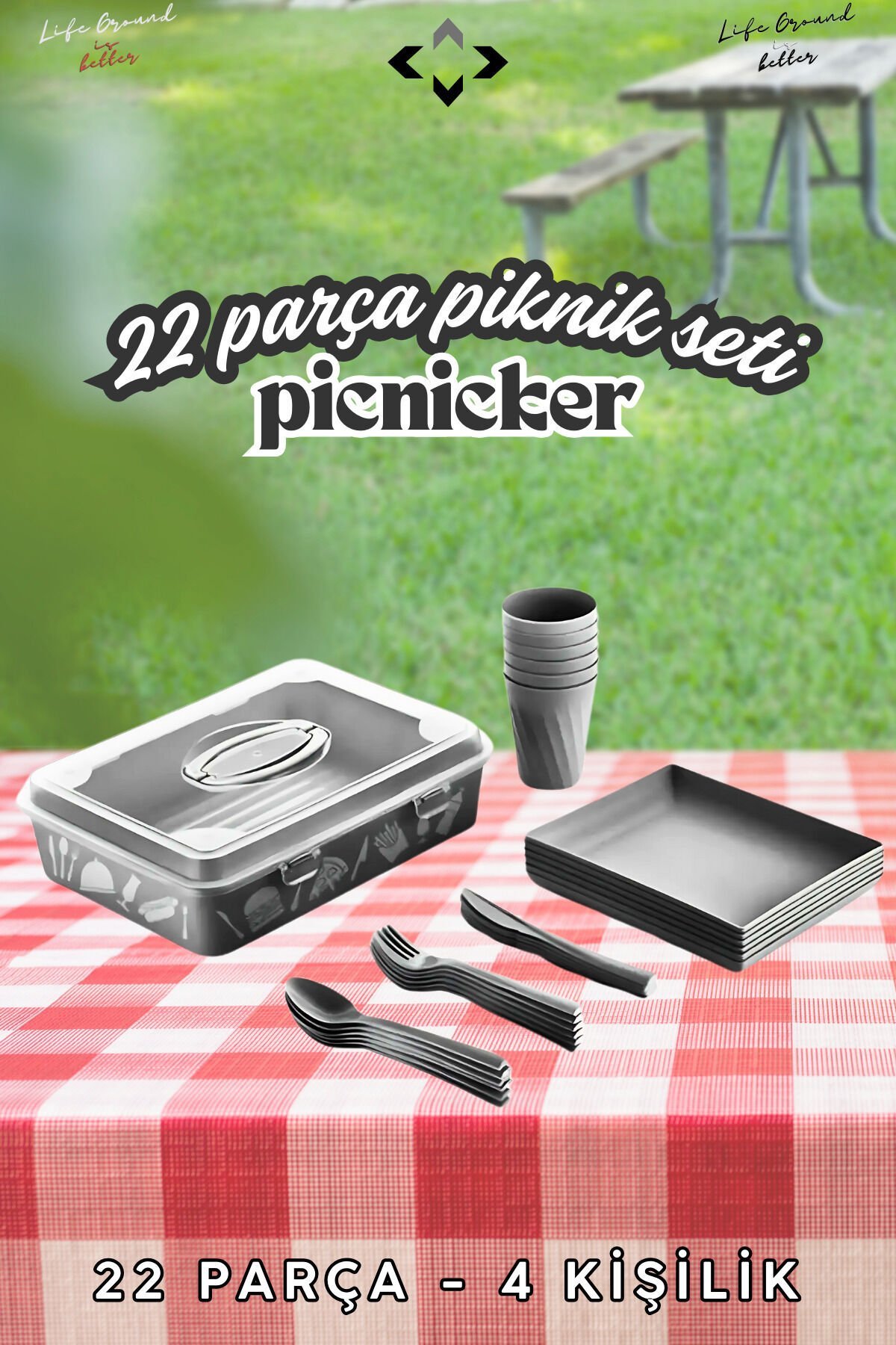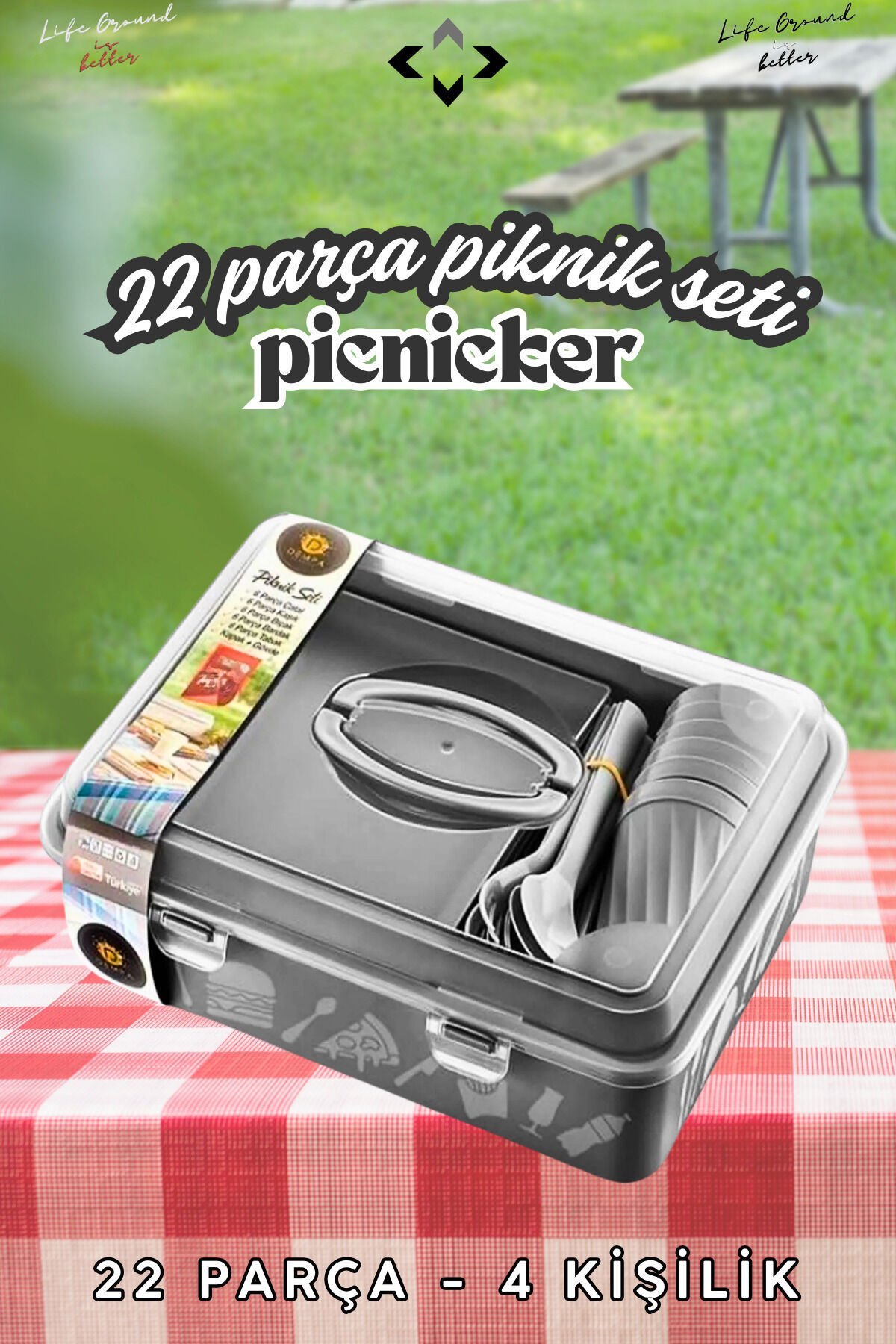 M-Picnicker 4 Kişilik 22 Parça Piknik Seti Kamp Piknik Yemek Seti Plastik Piknik Seti Sepeti