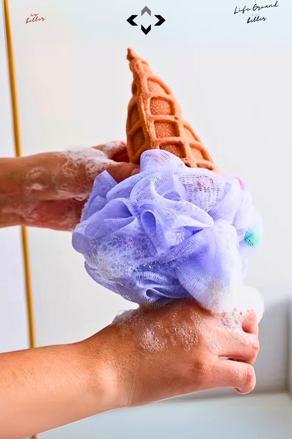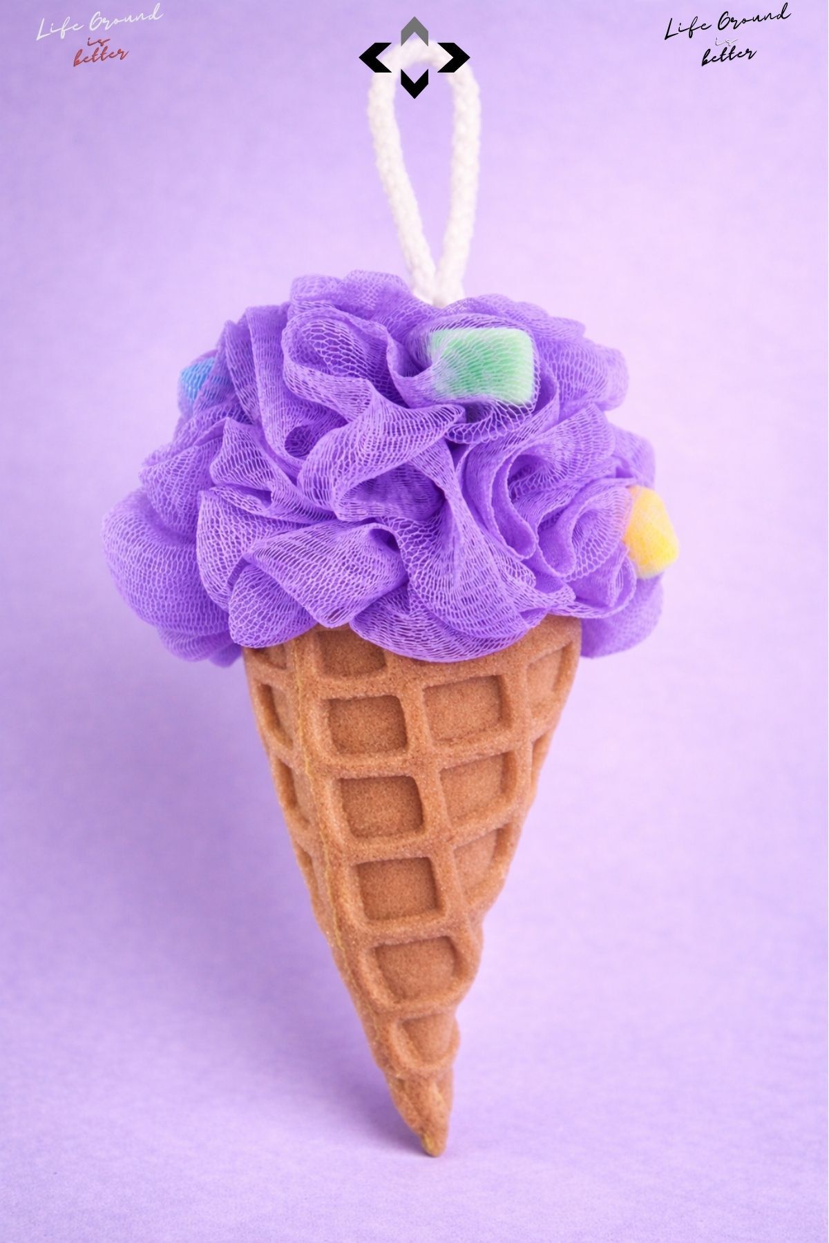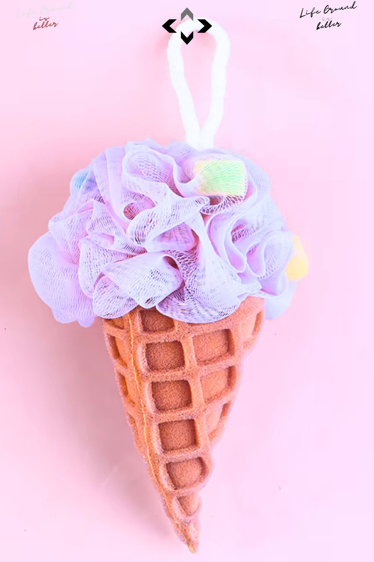 Mor Sweety Dondurma Desenli Banyo Duş Kesesi Banyo Vücut Lifi Süngeri Çocuk/Yetişkin Banyo Lifi