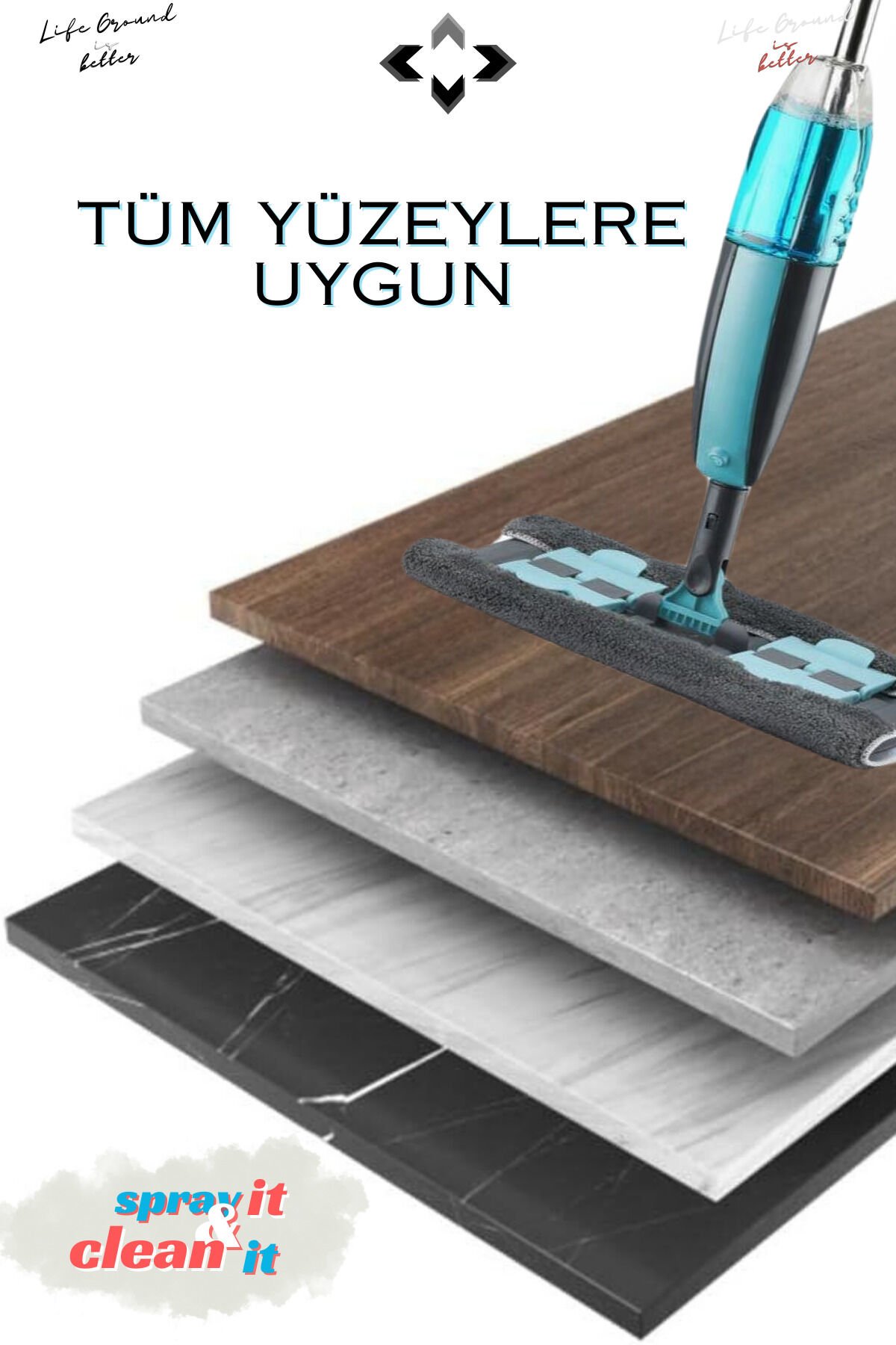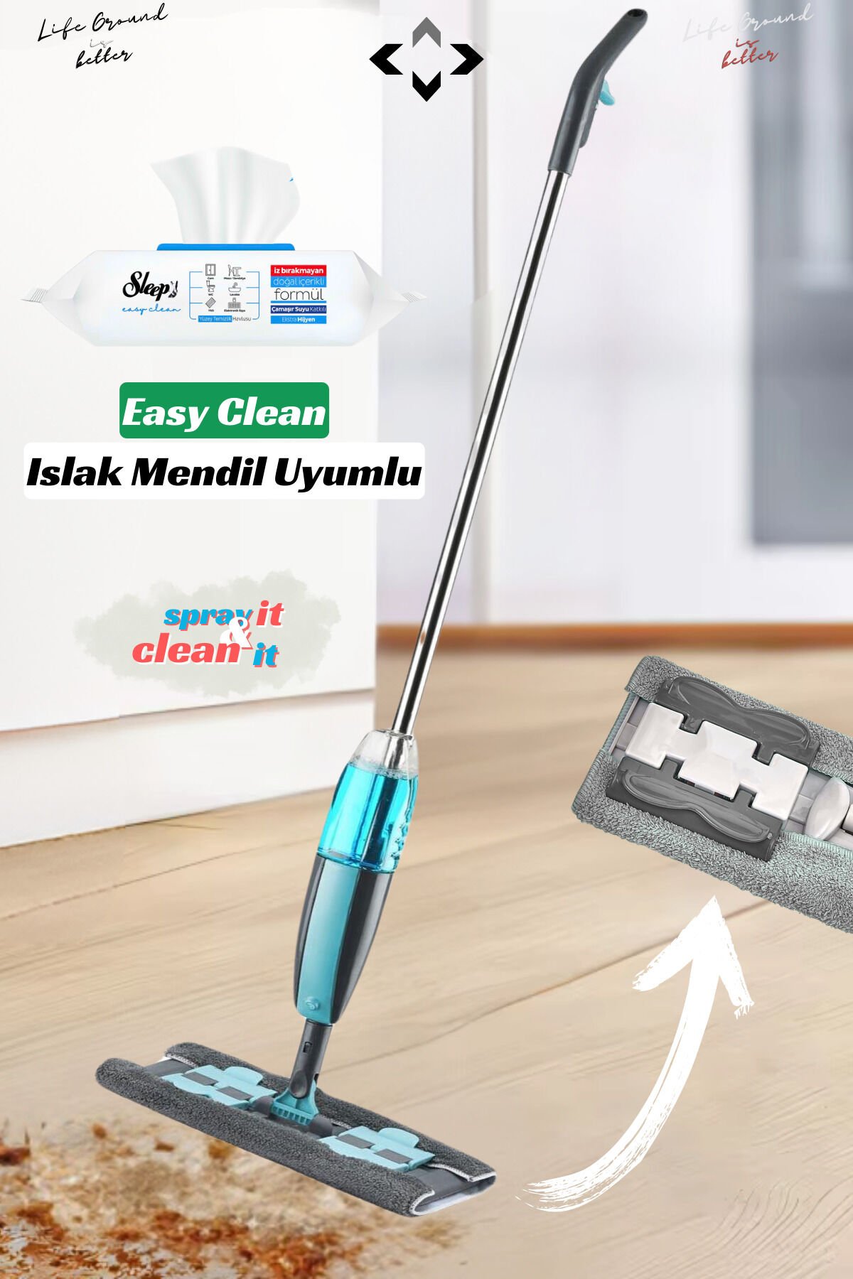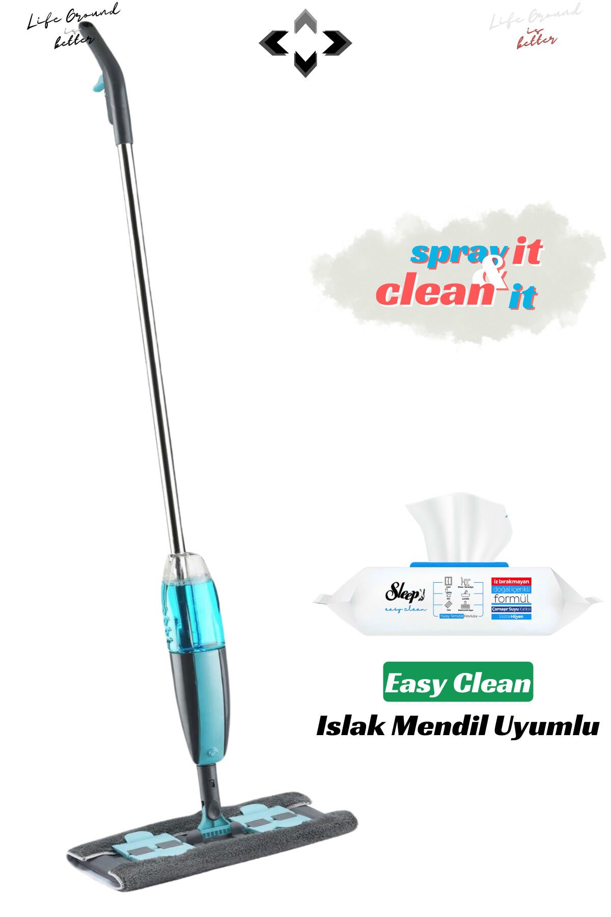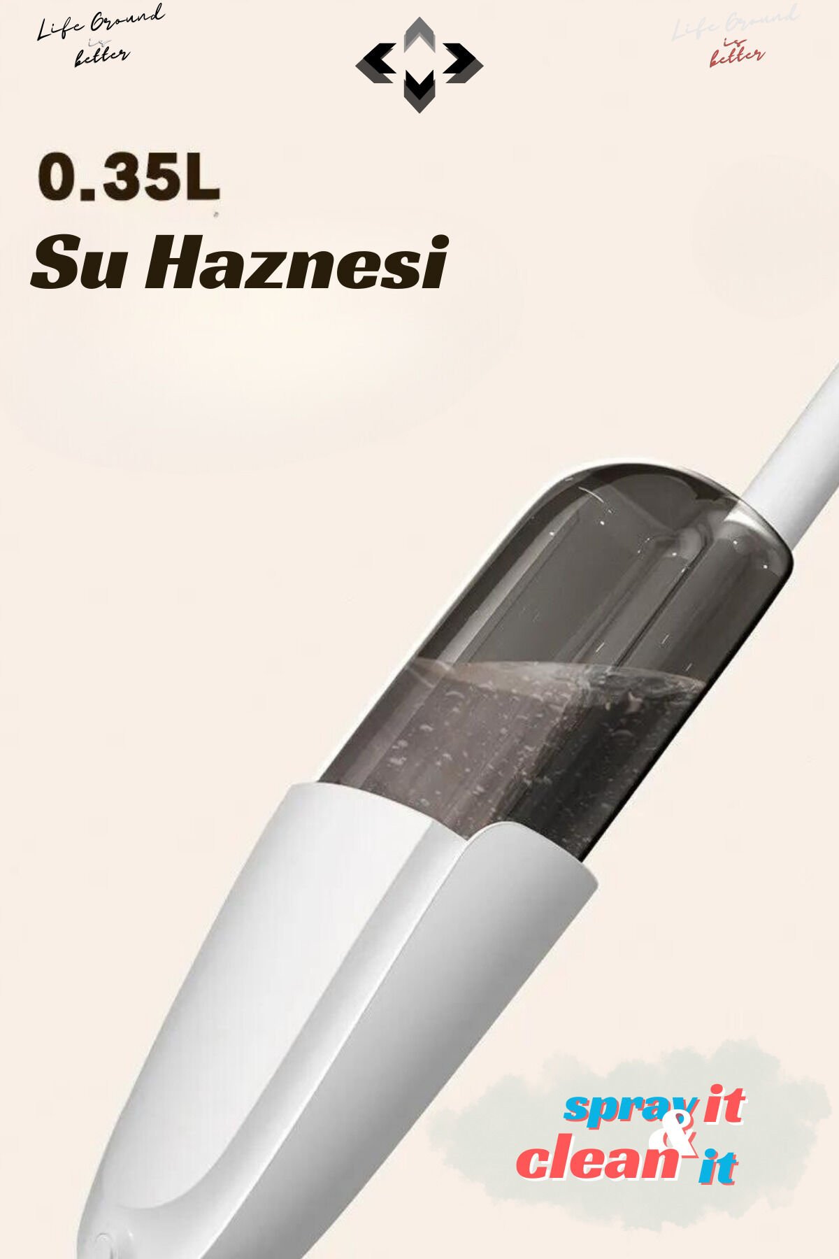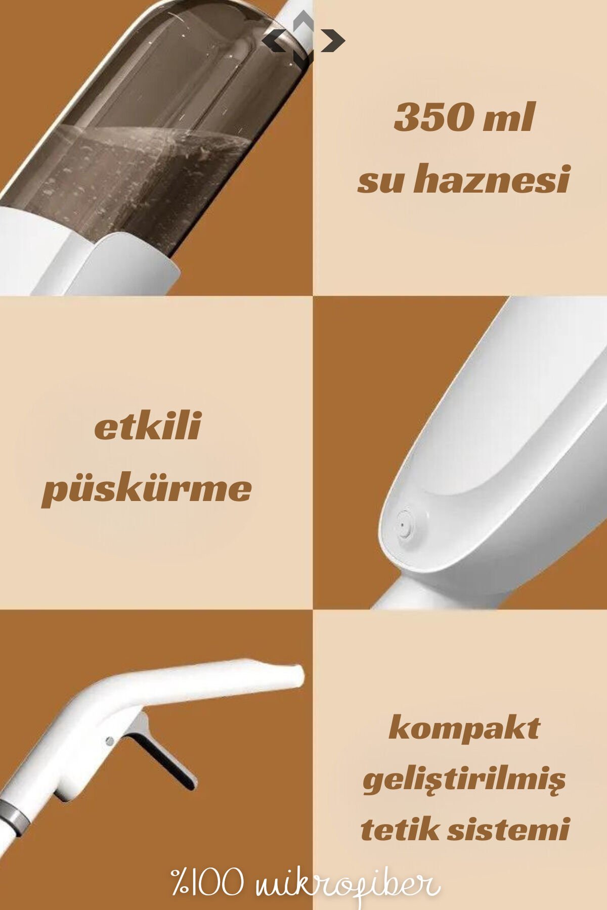 Mandallı Sprey Mop 360 Derece Döner Başlıklı %100 Mikrofiber Sprey Mop 350 ml Su Haznesi