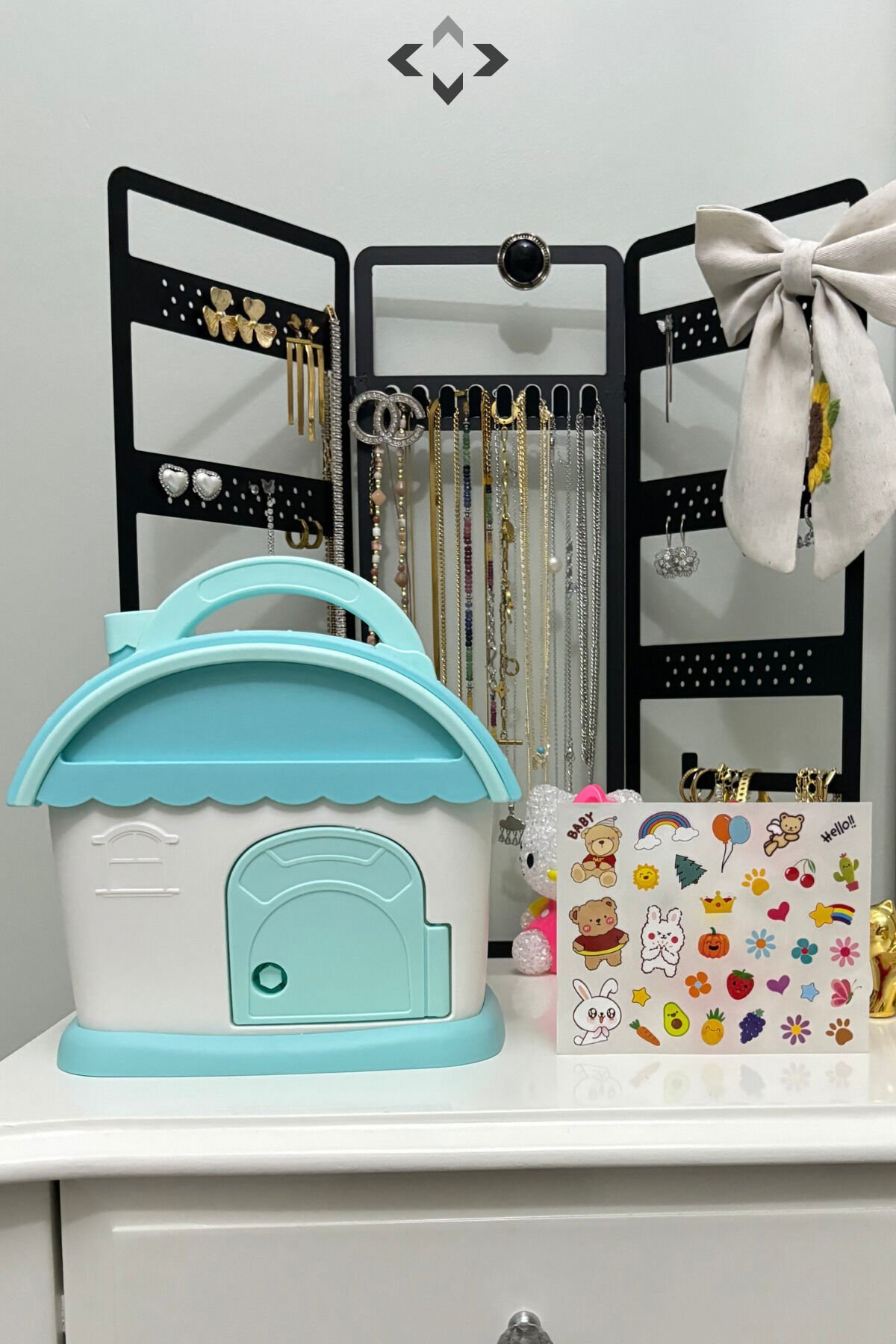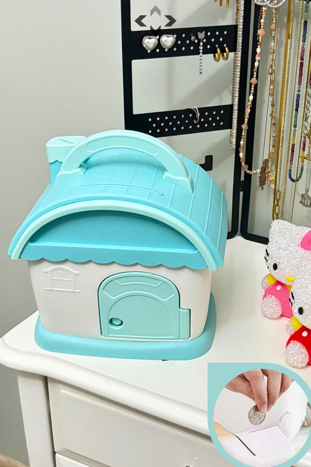 MAVİ Dekoratif Ev Desenli Kumbara Sticker Seti HEDİYE! Biblo Kumbara Dekoratif Ev Kumbara Birikim