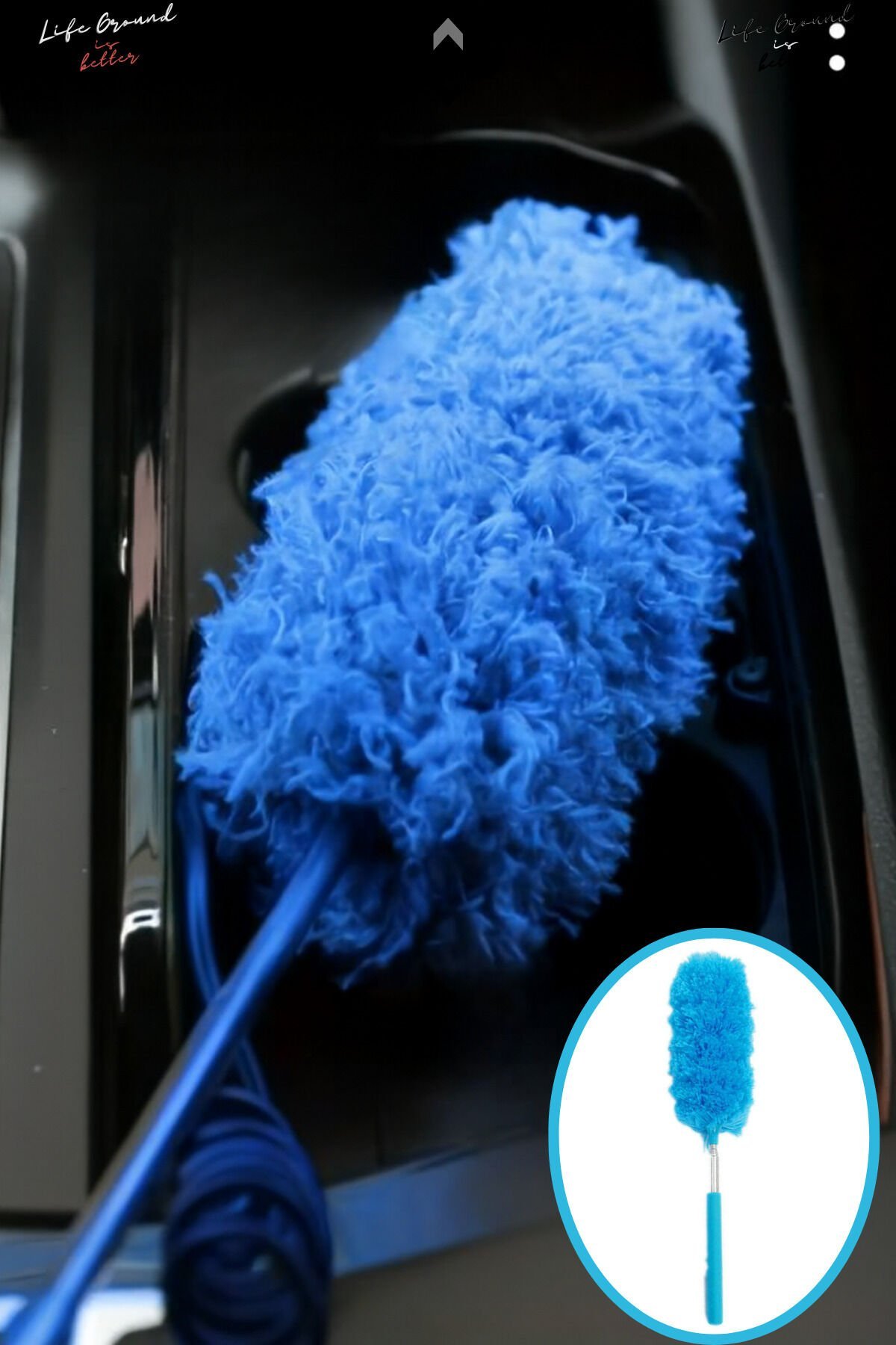 Mavi Teleskobik Toz Alma Bezi Mikrofiber Yıkanabilir Araç İçi Toz Alma Bezi ;
