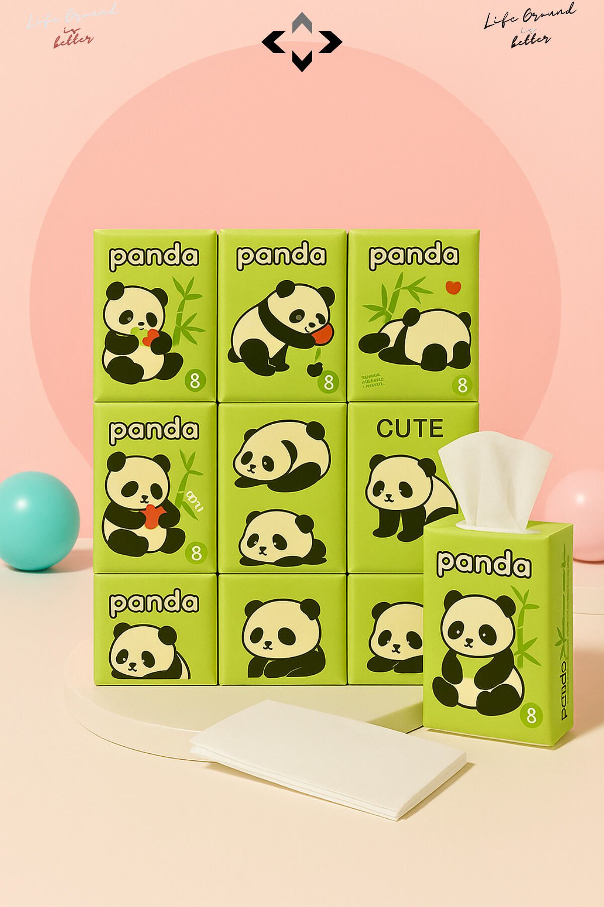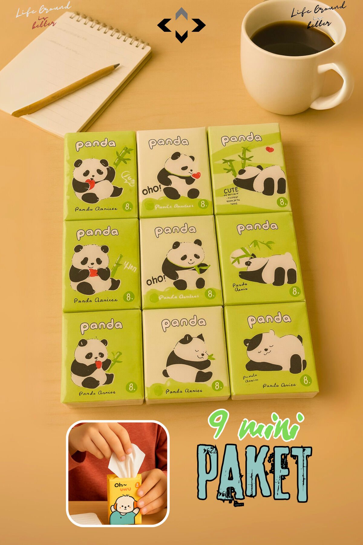 Panda Sevimli Desenli 9’lu Mini Peçete Taşınabilir Çocuk Okul Çanta Cep Mendili Hijyenik Kağıt
