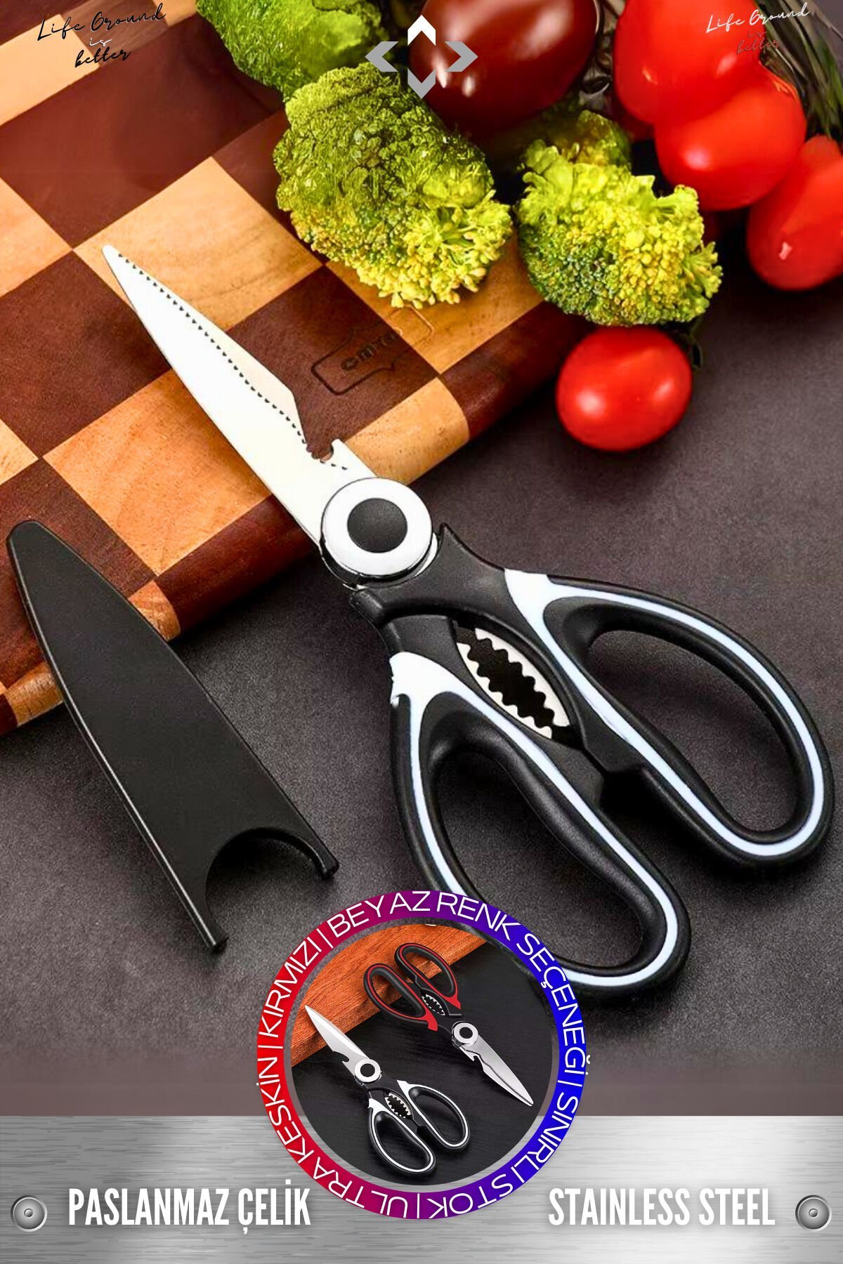 Paslanmaz Çelik Ultra Keskinleştirilmiş Mutfak Makası Çok Amaçlı Balık Et Sebze Makası Koruma Kapakl
