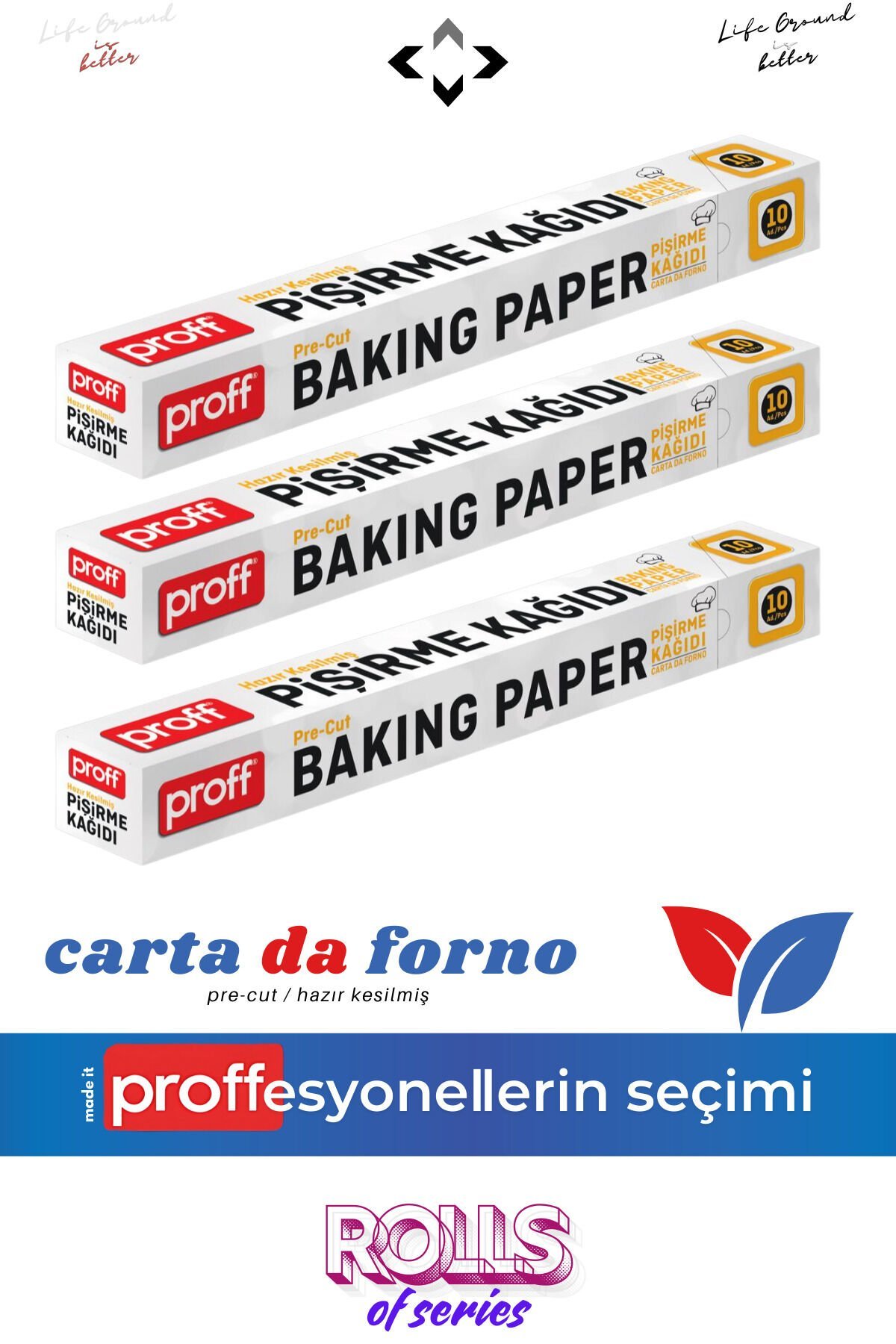 Proff 3 x carta da forno Hazır Kesilmiş Fırın Pişirme Kağıdı 10'lu 3 Paket ROLLS of Series