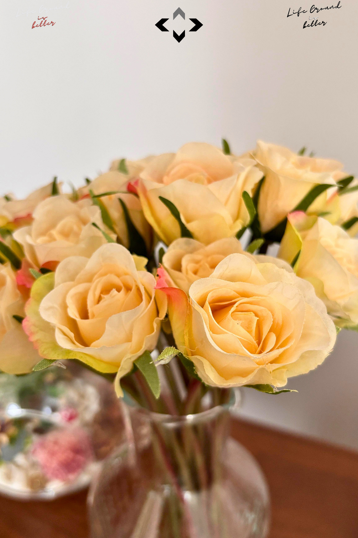 Sarı 20 Pcs Doğal Görünümlü Yapay Gül Buketi 20 Adet Ev Dekorasyon Gelin Çiçeği