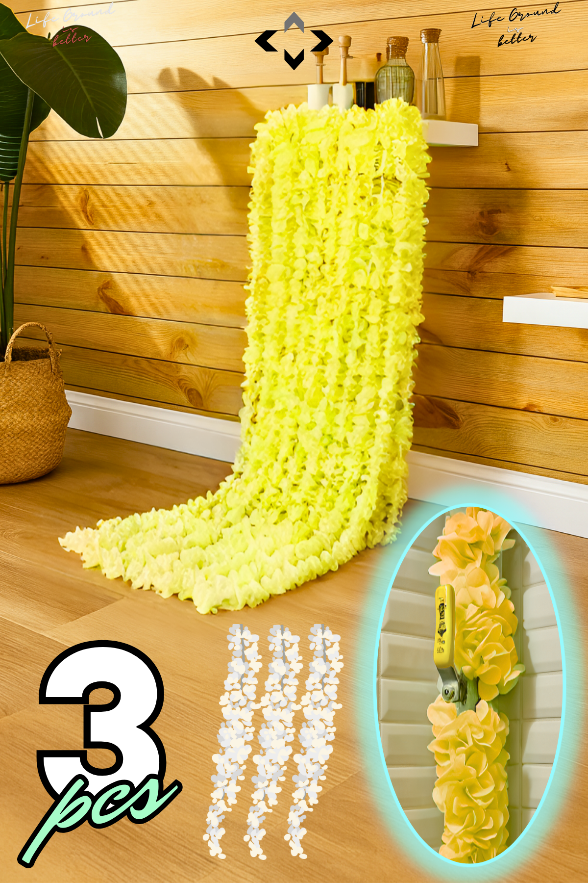 Sarı 3 Metre Doğal Orkide Görünümlü Yapay Asma Çiçek – Sarkıt Dekor, Boru Gizleme, Düğün & Nişan Süsleme