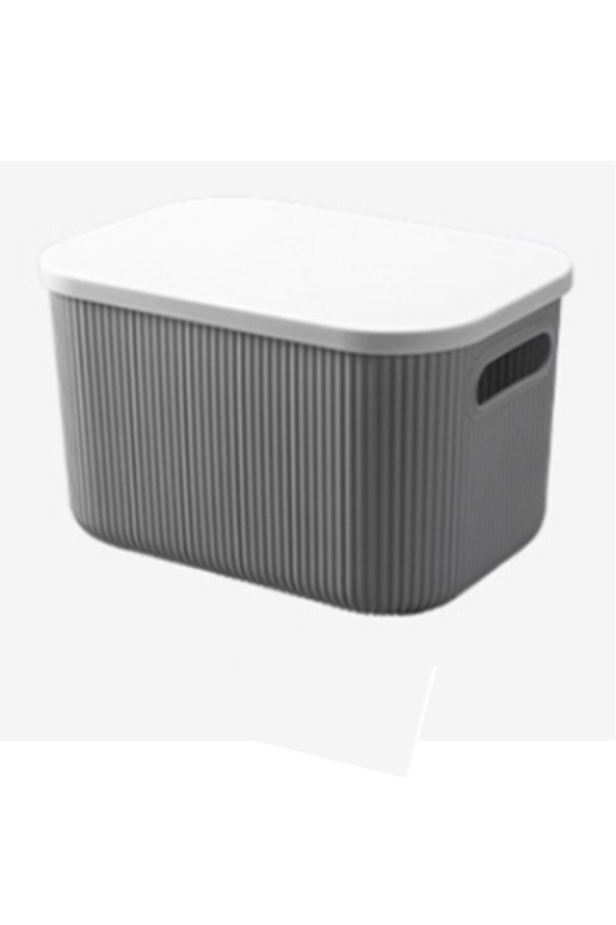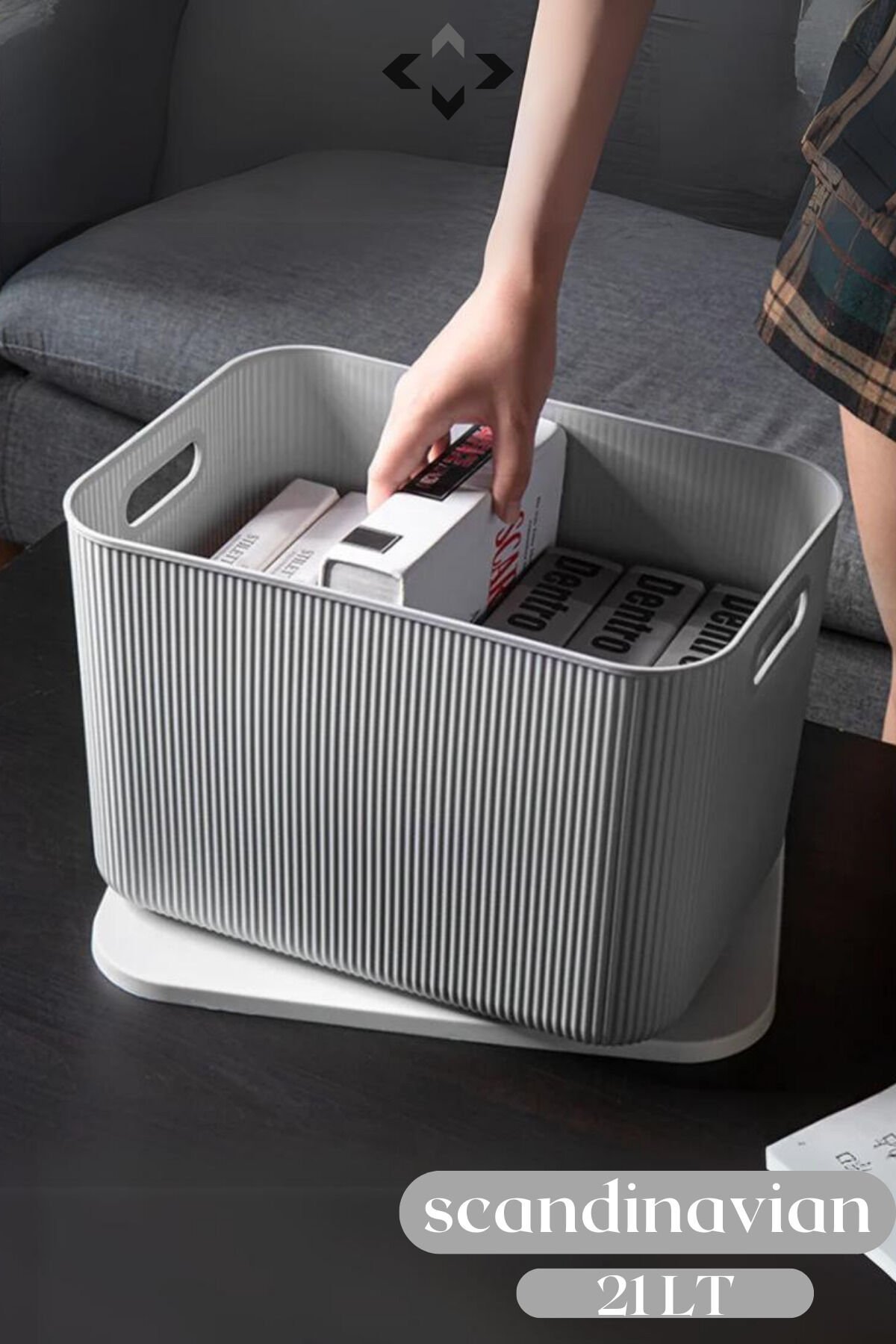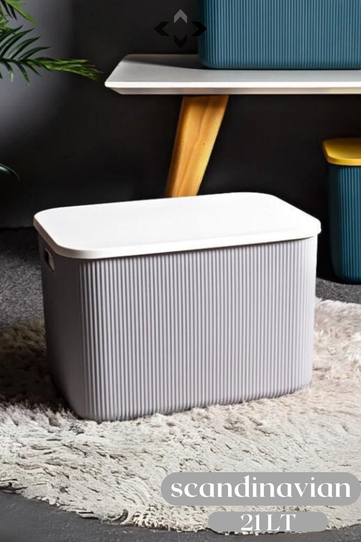 Scandinavian 21 Lt Çok Amaçlı Gri Saklama Kutusu - Düzenleyici - Kapaklı Çamaşır Sepeti