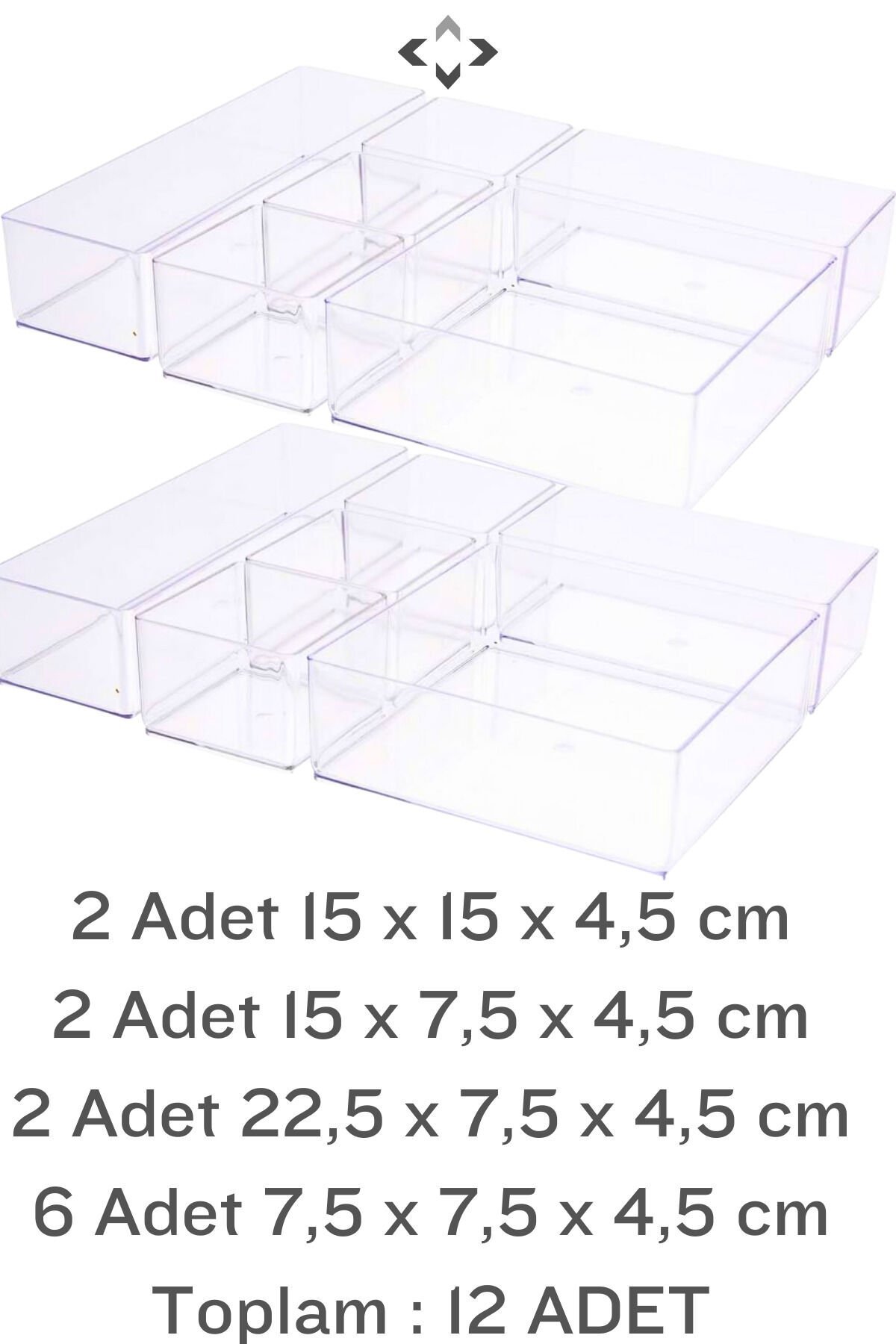 shine XL 12 PCS Organizer Düzenleyici Set Modüler Çekmece İçi Düzenleyici Organizer Set 12 Parça ; 2 Adet 15 x 15 x 4,5 cm ; 2 Adet 15 x 7,5 x 4,5 cm ; 2 Adet 22,5 x 7,5 x 4,5 cm ; 6 Adet 7,5 x 7,5 x 4,5 cm ; Çeşitli boyutları ve ergonomik tasarımı ile makyaj, banyo, mutfak ve ofis çekmeceleriniz artık daha düzenli! ; Şeffaf rengi ile kullanım alanınıza bağlı olarak içindeki her şeyi rahat görebilmenize olanak sağlar. ; Ergonomik tasarımı ile makyaj, banyo, mutfak, masa üstü ofis gibi kullanım alanlarına uyum sağlar. ; Ofis çekmecenizde kırtasiye malzemelerinizi, Hobi malzemelerinizi, mutfakta çekmece aksesuar düzenleme ve kaşıklık olarak çok amaçlı kullanabilirsiniz ; Farklı boyutları ile her kullanım alanında gönül rahatlığıyla değerlendirebilirsiniz. ;