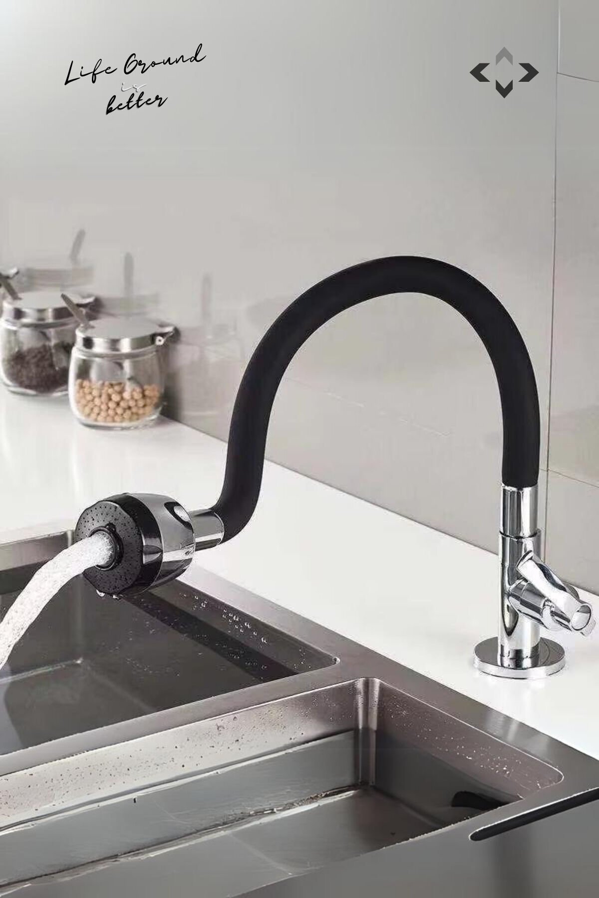 Bu musluk başlığı, su sıçramasını azaltarak temizlik işlemlerini kolaylaştırır ve su tasarrufuna yardımcı olur; mutfakta konforlu bir deneyim sunar. Modern siyah tasarımıyla mutfak ve banyo dekoruna şık bir dokunuş sağlar.