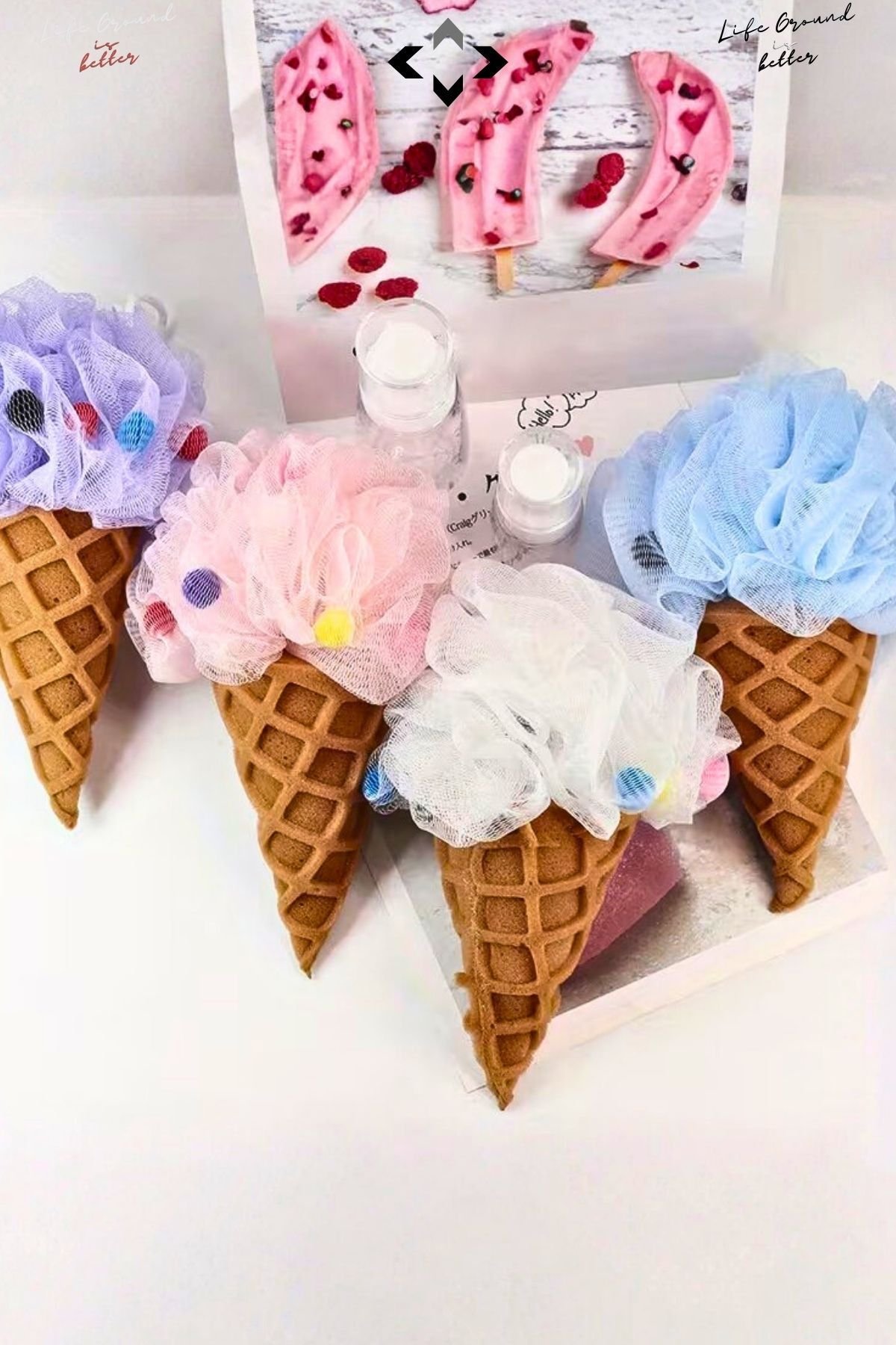 Sweety Fiber 3 Adet Dondurma Desenli Duş Banyo Kesesi Banyo Vücut Lifi Desenli Banyo Süngeri