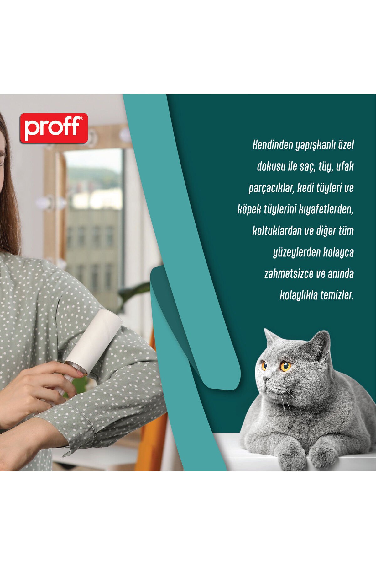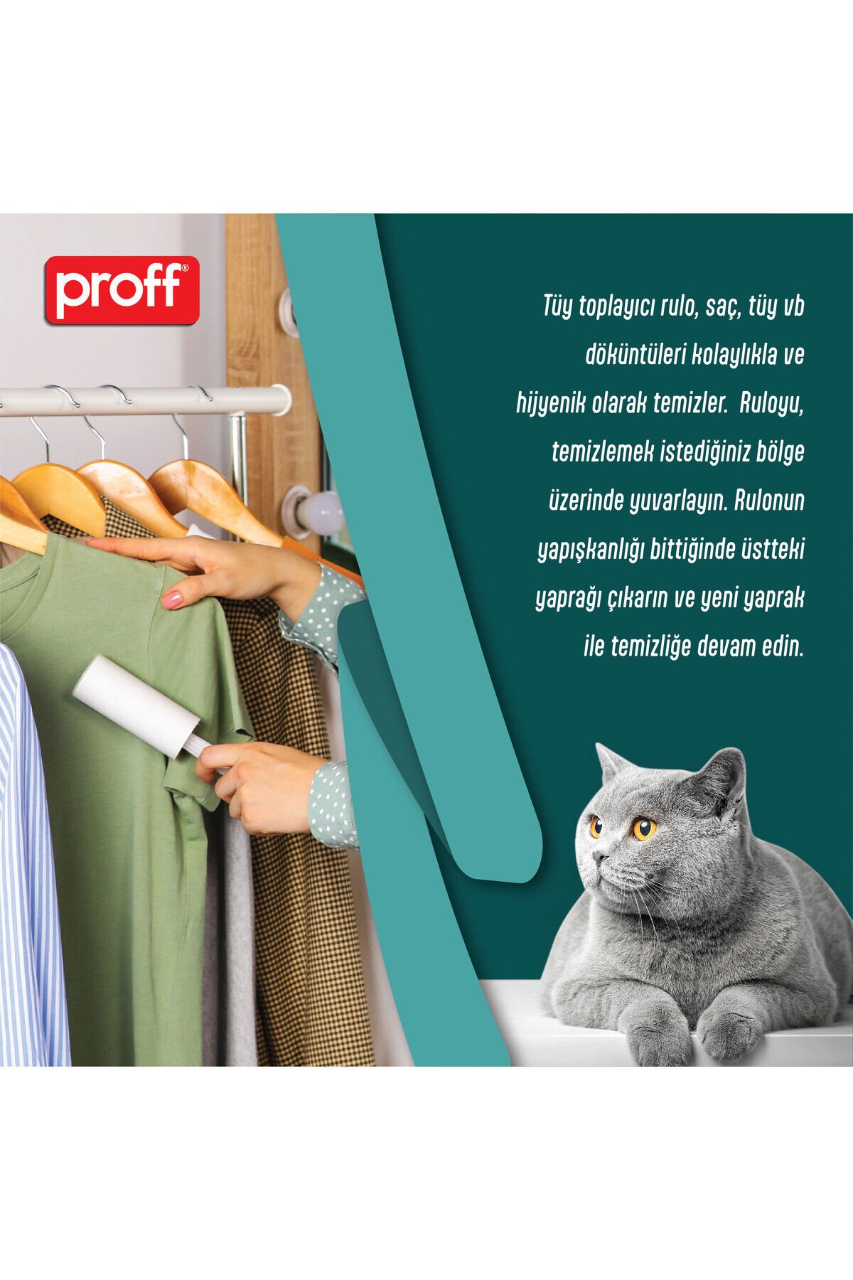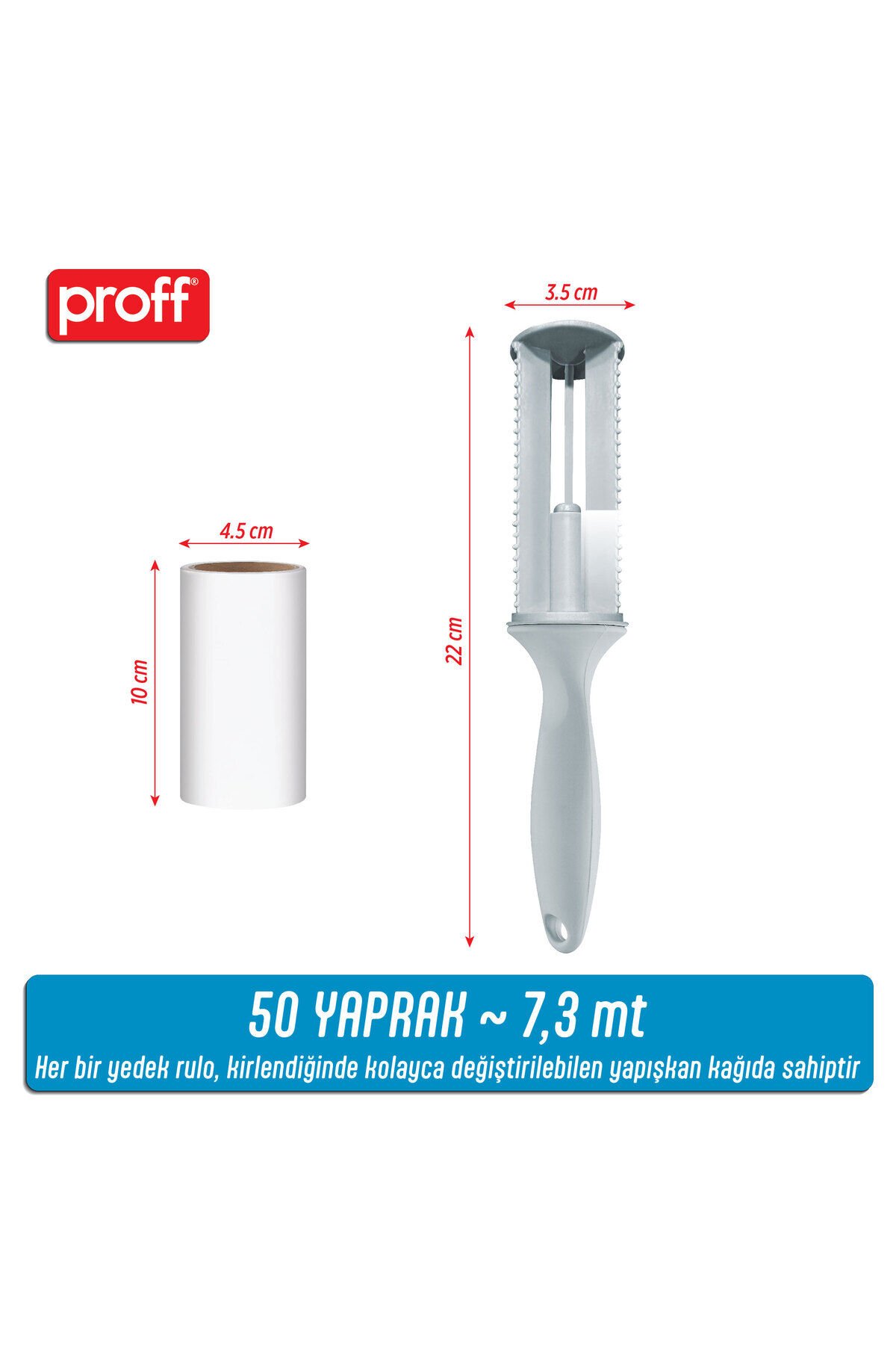 Proff Tüy Toplayıcı 12 Li Yedek Rulo + Aparat Proff Tüy Toplayıcı yedek rulo kirlendiğinde kolayca değiştirilebilen 50 yaprak yapışkan kağıda sahip olup 12 yedek rulo içerir; Kendinden yapışkanlı özel dokusu ile saç, tüy, ufak parçacıklar ve evcil hayvan tüylerini kıyafetlerden, koltuklardan ve diğer tüm yüzeylerden kolayca ve anında temizler kumaş ve diğer yüzeylere zarar vermez; Lütfen aldığınız ürünlerde olan yaprak sayısını kontrol ederek sipariş veriniz.; Toplam yaprak sayısını belirtmeyen markalarda, ürün resmini büyüterek yaprak sayısını mutlaka kontrol ediniz.