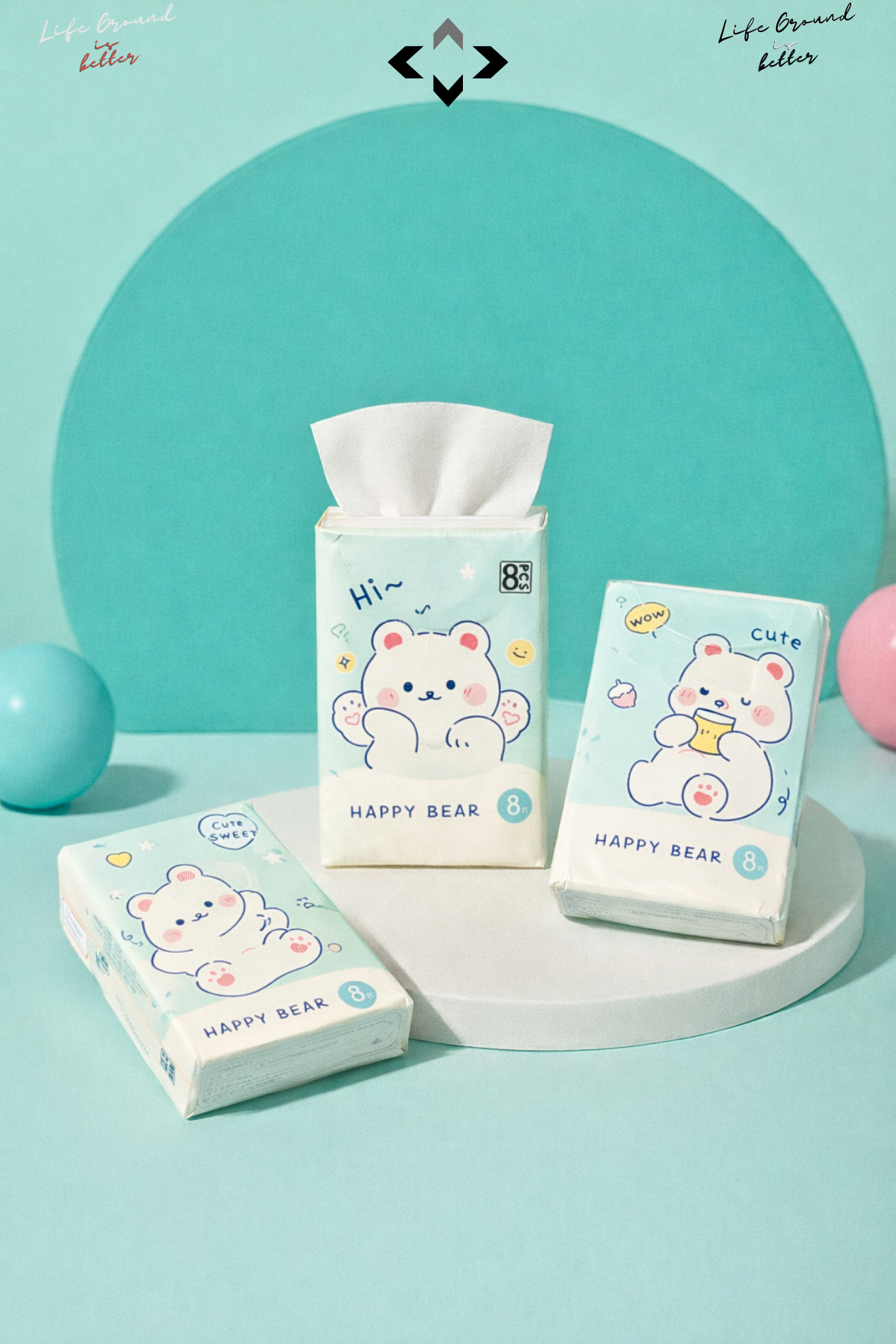 Happy Bear Sevimli Desenli 9’lu Mini Peçete Taşınabilir Çocuk Okul Çanta Cep Mendili Hijyenik Kağıt