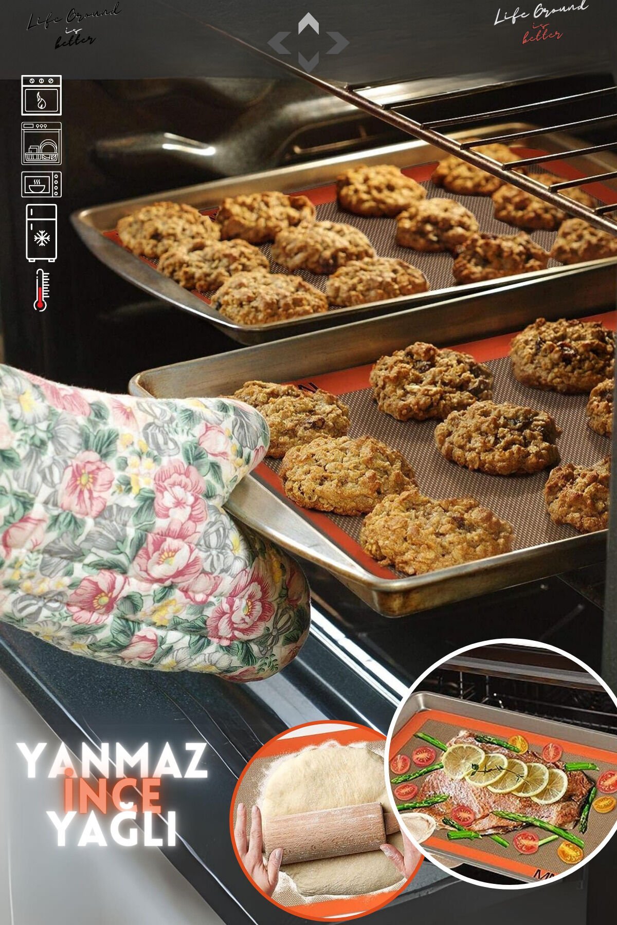 Yanmaz Yapışmaz Silikon Fırın Matı 30x40cm Tekrar Kullanılabilir Pişirme Hamur Kurabiye Börek Altlık